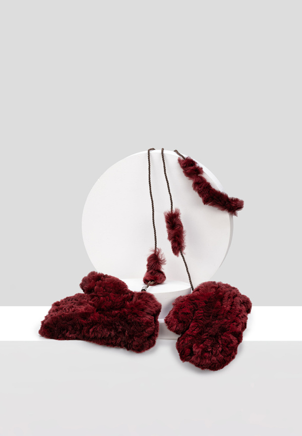Bordowe futrzane rękawiczki na jeden palec