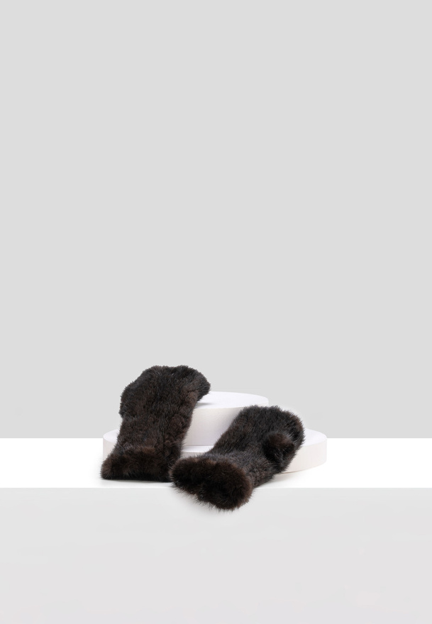 Brązowe futrzane rękawiczki bez palców