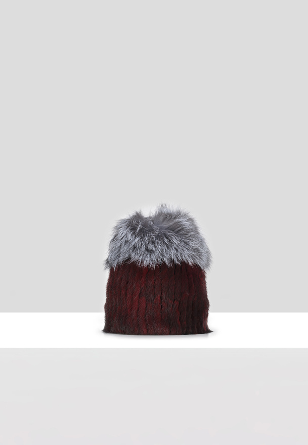 Elegancka bordowa czapka z naturalnym futrem