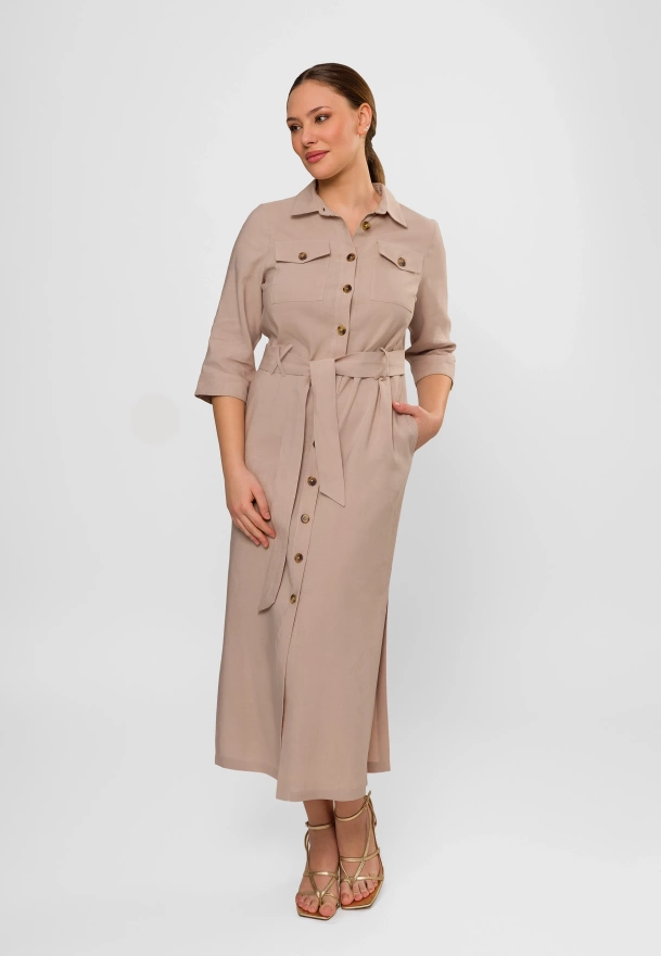Beżowa szmizjerka z wiskozą i lnem