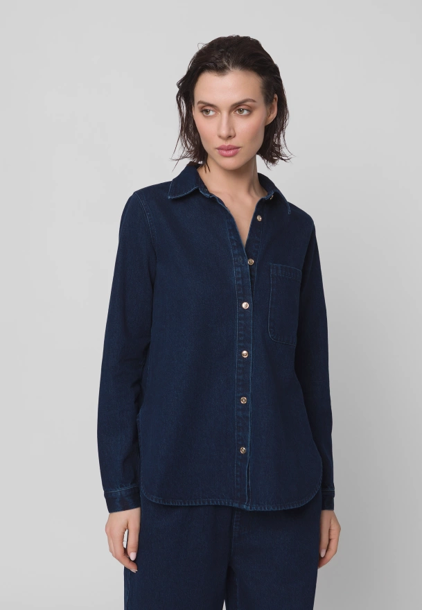Granatowa jeansowa koszula zapinana na guziki