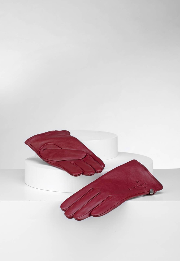 Skórzane bordowe rękawiczki z ozdobną plecionką