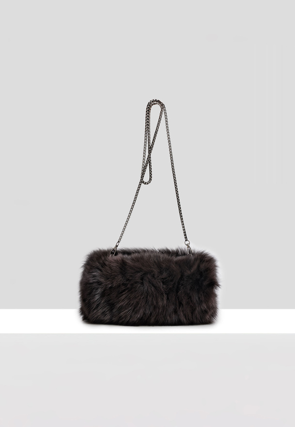 Czarna torebka etui z naturalnego futra