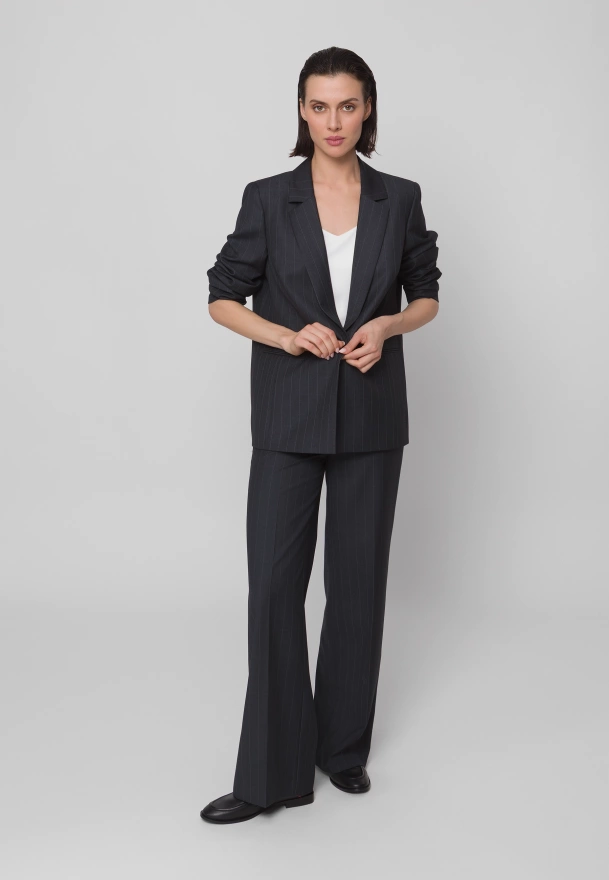 Kolekcja obejmuje klasyczne marynarki, do których dobierzesz spodnie w różnym fasonie aby stworzyć damski garnitur. Do wyboru w jesiennej odsłonie znajdziesz zestawy w modnym czekoladowym kolorze, intensywnej czerwieni, szarościach granacie i klasycznej czerni.
