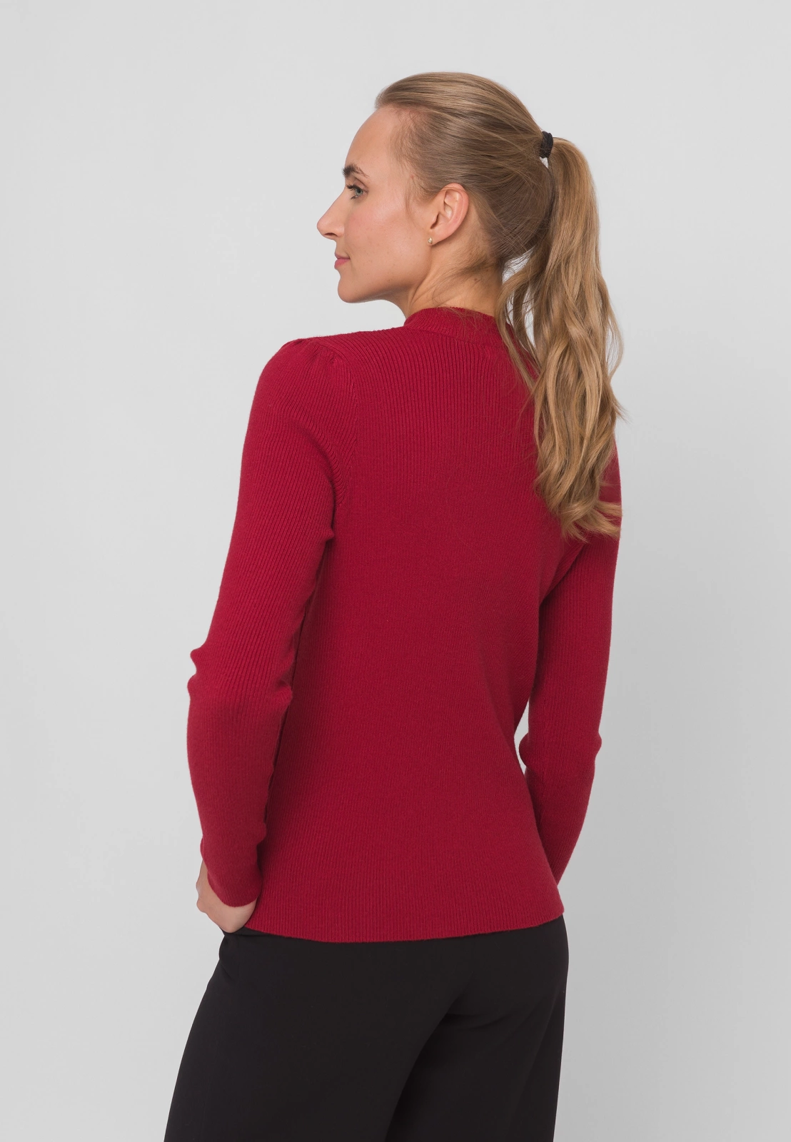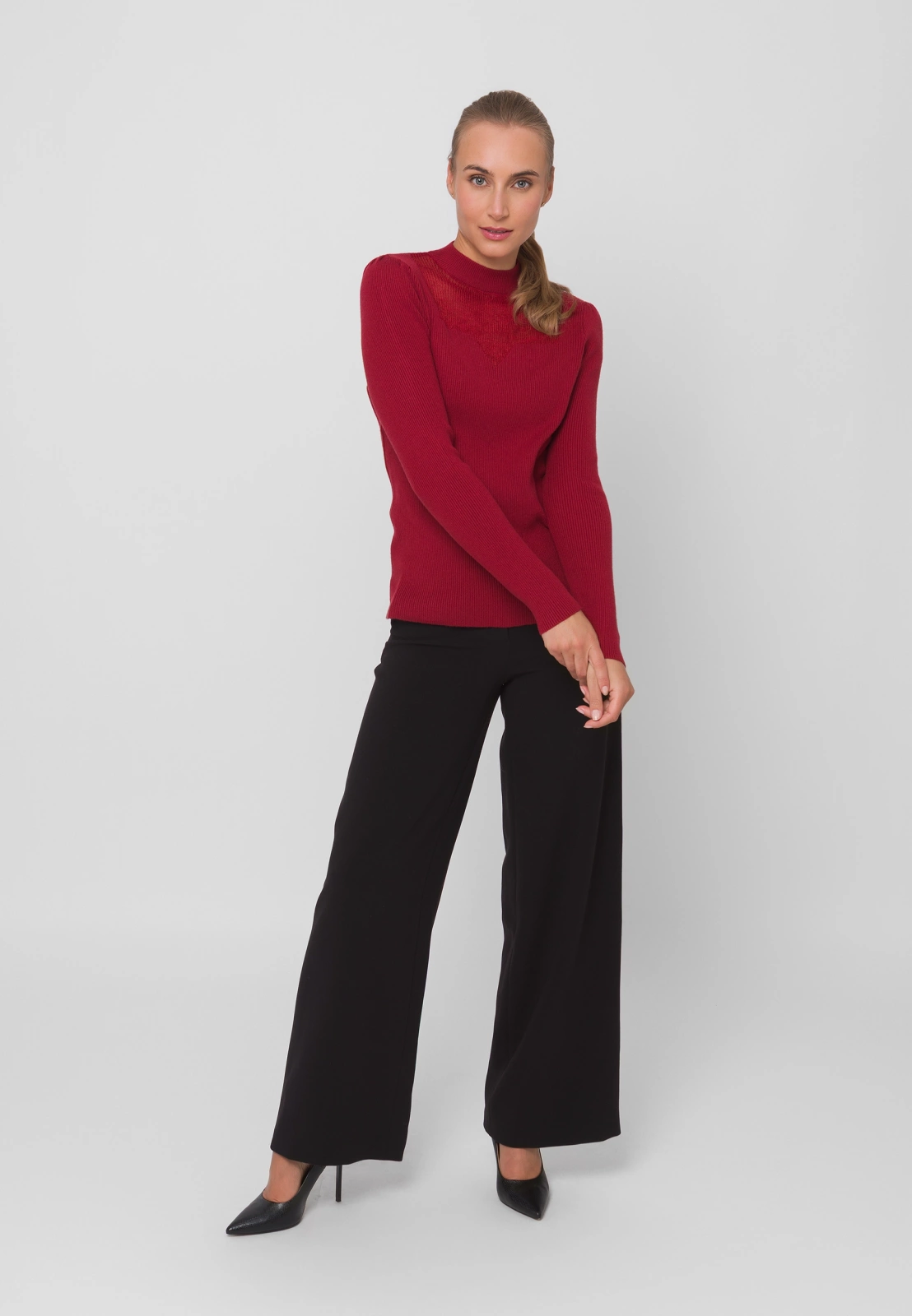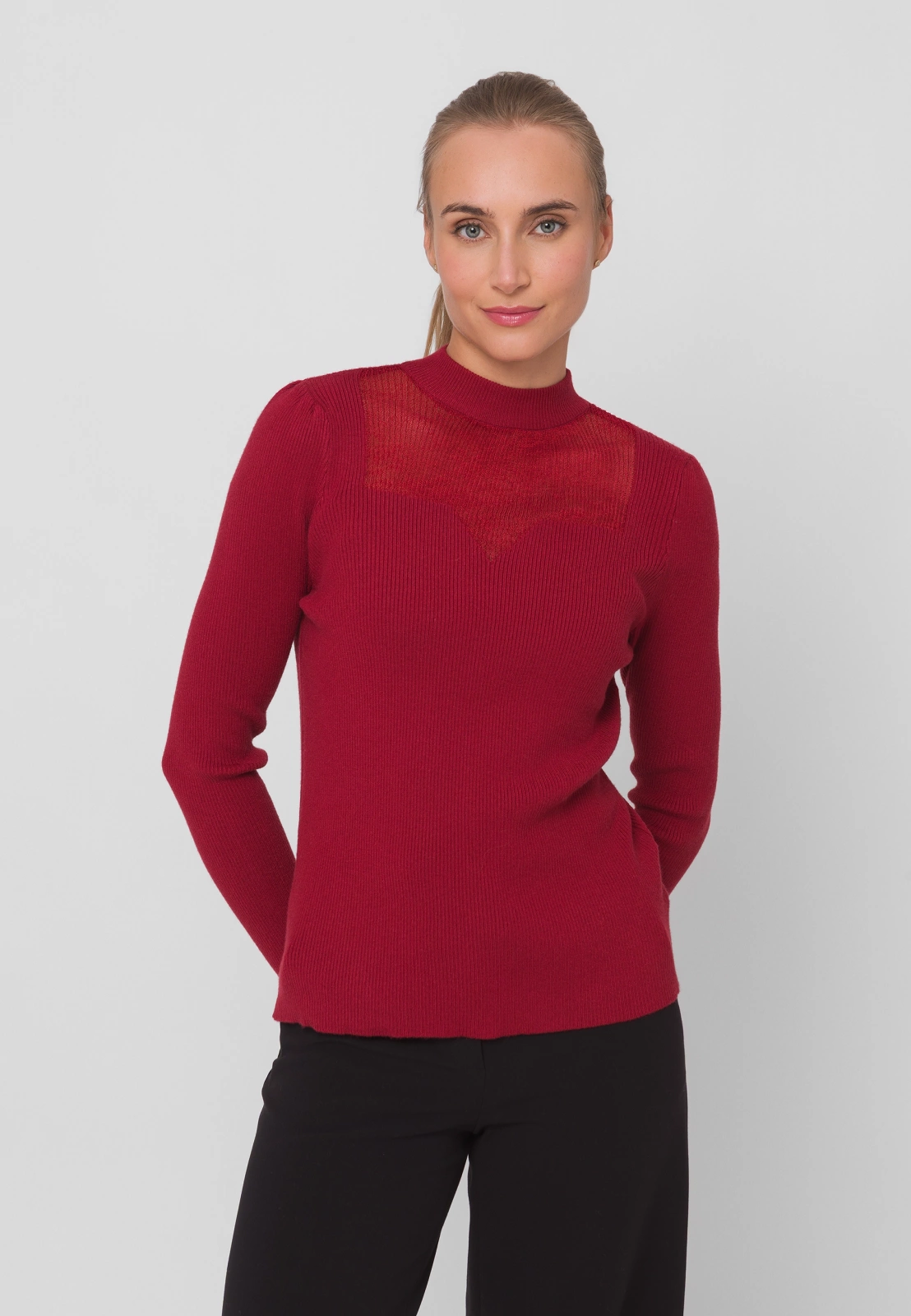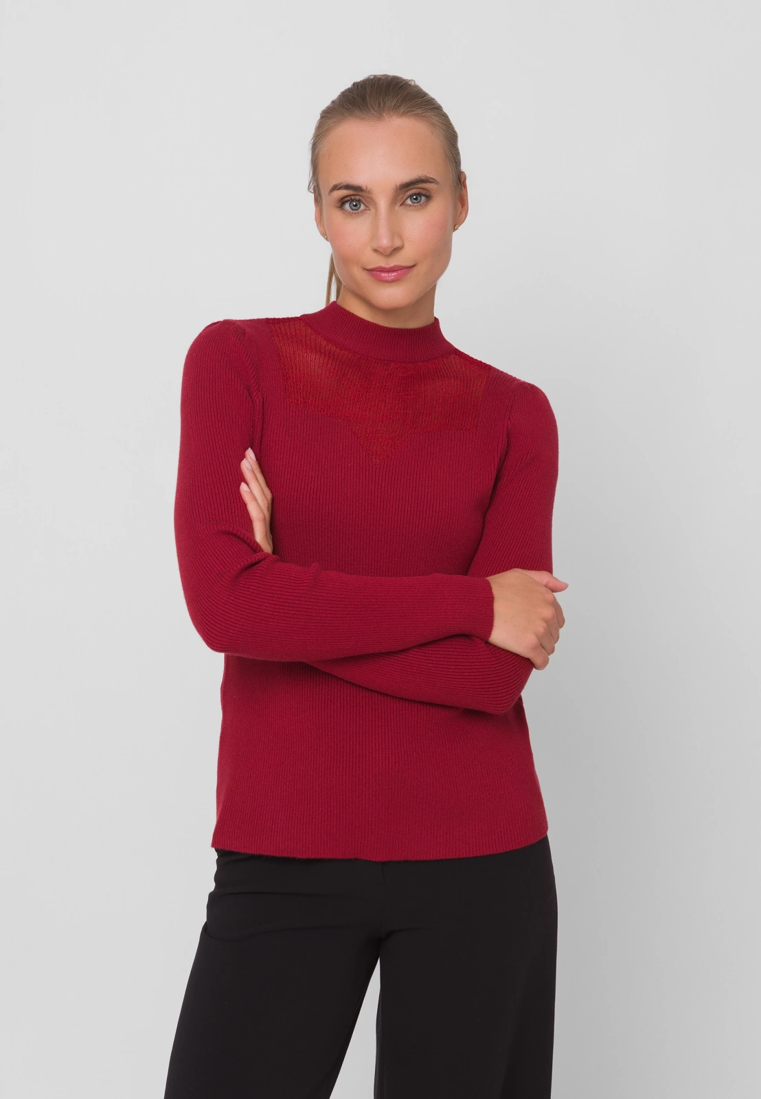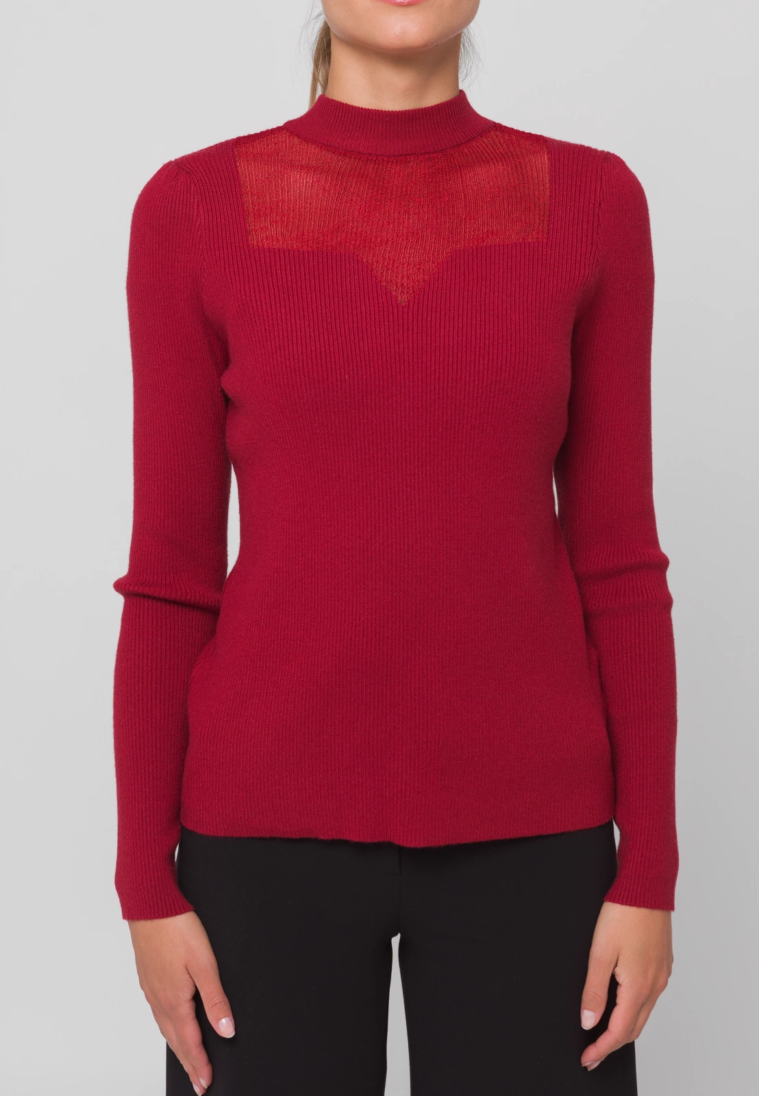 Bordowy dzianinowy półgolf z ażurowym dekoltem