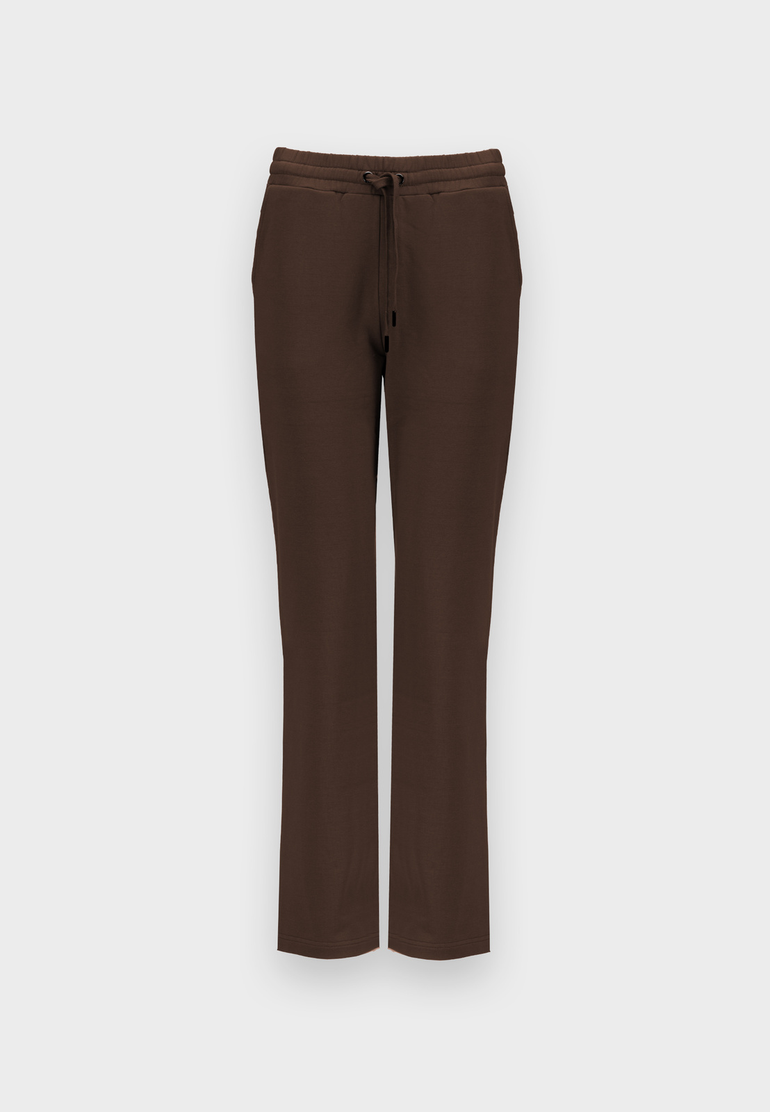 Brązowe spodnie dresowe wykonane z wysokiej jakości bawełny z domieszką elastanu. Prosty krój nogawek u dołu zapewnia nowoczesny look, a elastyczna gumka i sznurek w pasie gwarantują idealne dopasowanie i wygodę noszenia.  Dresy idealnie pasujące do bluzy z tego samego zestawu, to komfort i styl w jednym. Spodnie doskonale sprawdzą się w codziennych stylizacjach, na co dzień, do aktywności sportowych lub w domowym relaksie, tworząc razem z bluzą spójny i modny zestaw. Spodnie dostępne również w kolorze bordowym i czarnym.