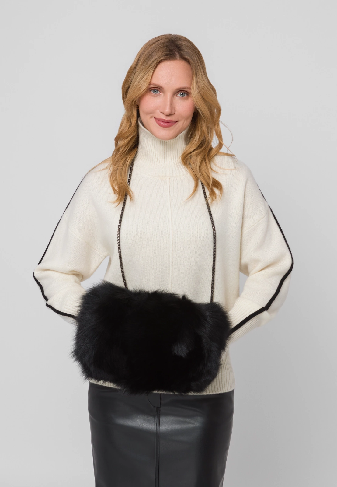 Futrzana torebka-mufka to wyjątkowy dodatek do wielu stylizacji. Mufka łączy funkcję schronienia dłoni z funkcją torebki, zapewniając ciepło, wygodę i niepowtarzalny styl. Wewnątrz mufki znajduje się torebka zapinana na suwak. Model wyposażony jest w dodatkowy łańcuszek, dzięki któremu można ją użytkować na kilka sposobów – jako klasyczną torebkę na ramieniu lub elegancką mufkę na ręce. To bardzo ozdobny, efektowny dodatek, który ożywi zarówno codzienne, jak i bardziej wyszukane stylizacje. Dodatkowo dostępna jest w czterech uniwersalnych kolorach: beż, ciemny brąz, ciemny szary i czarny.
