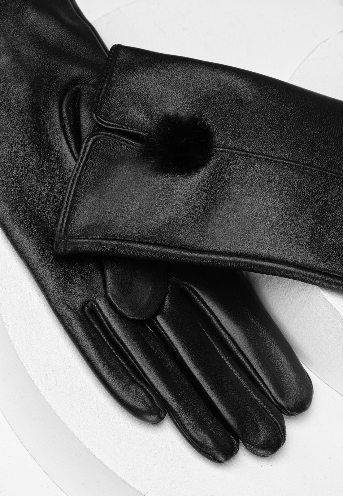 Czarne skórzane rękawiczki z puszkiem