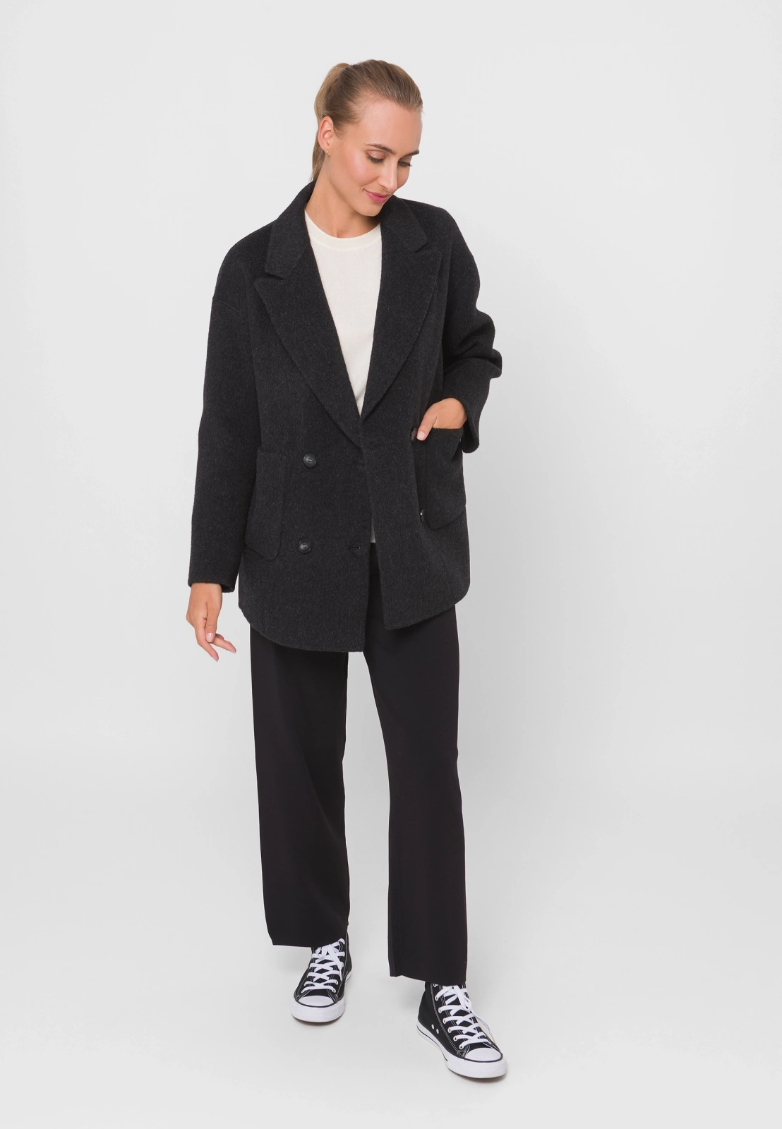 Modelka ma 175 cm wzrostu i prezentuje rozmiar S.