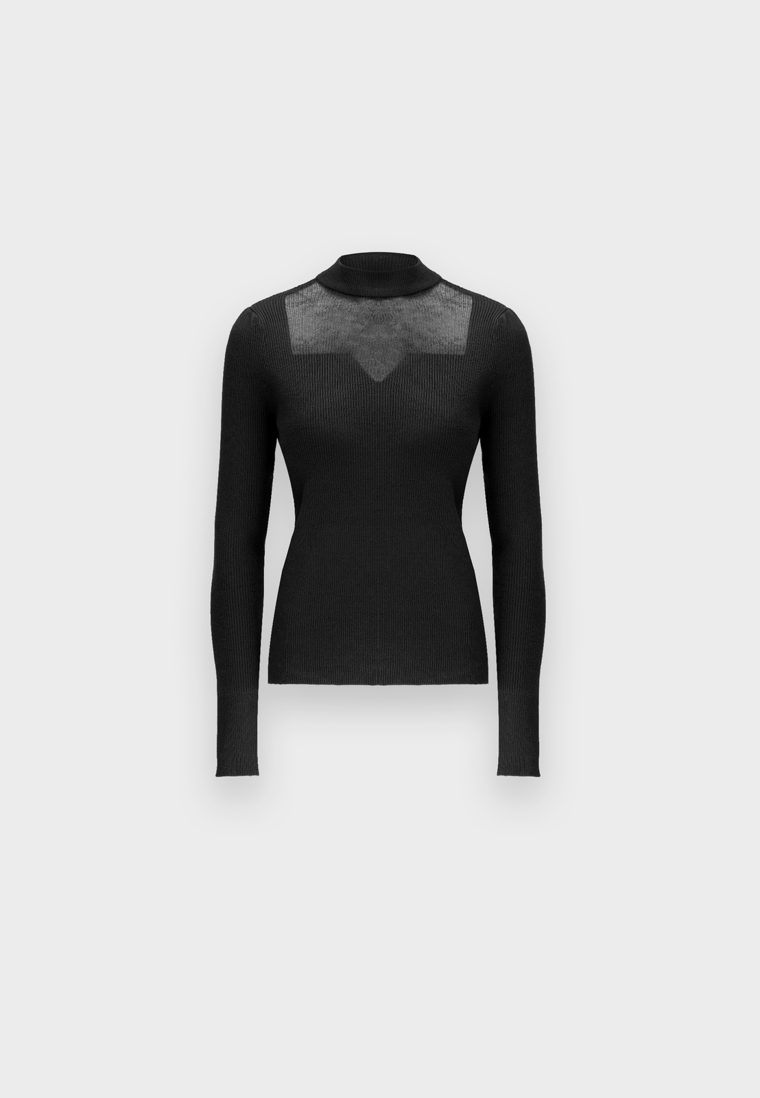 Czarny dzianinowy półgolf z ażurowym dekoltem