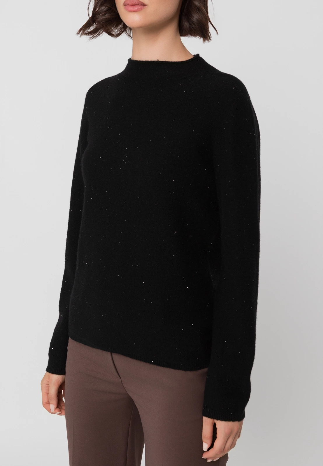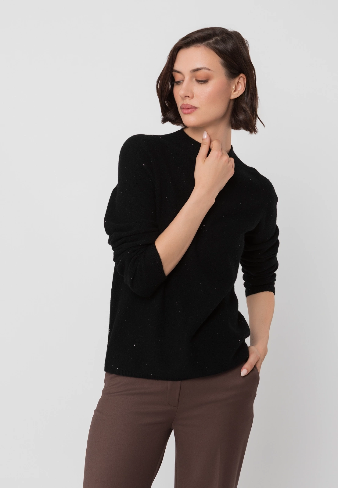 Czarny wełniany sweter z błyszczącymi drobinkami