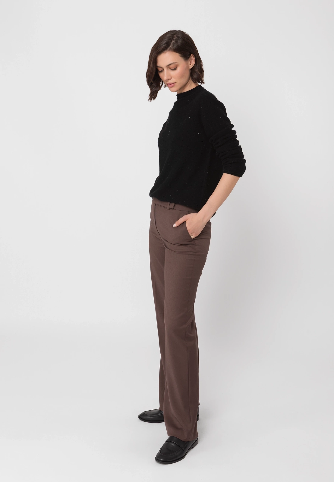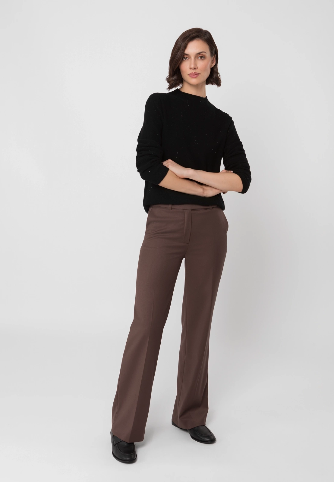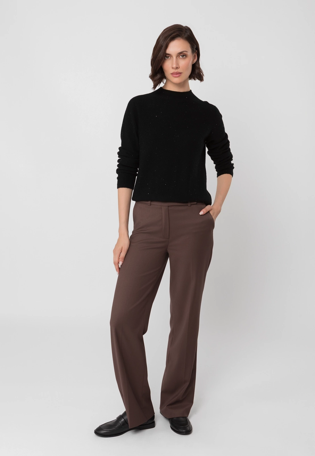 Elegancki sweter damski w kolorze czarnym z drobnymi cekinami, wykonany w 100% z naturalnej wełny, łączy w sobie komfort i ponadczasowy styl. Miękka, ciepła dzianina doskonale otula ciało, zapewniając przyjemne ciepło w chłodne dni. Model ze stójką subtelnie chroni szyję i nadaje sylwetce schludnego, klasycznego charakteru. To uniwersalny element garderoby, który sprawdzi się zarówno w codziennych, casualowych zestawieniach, jak i w bardziej eleganckich lookach. Dostępny także w kolorze ecru.