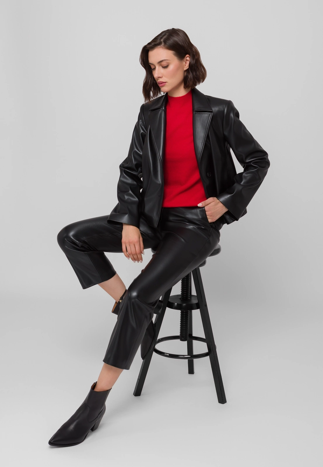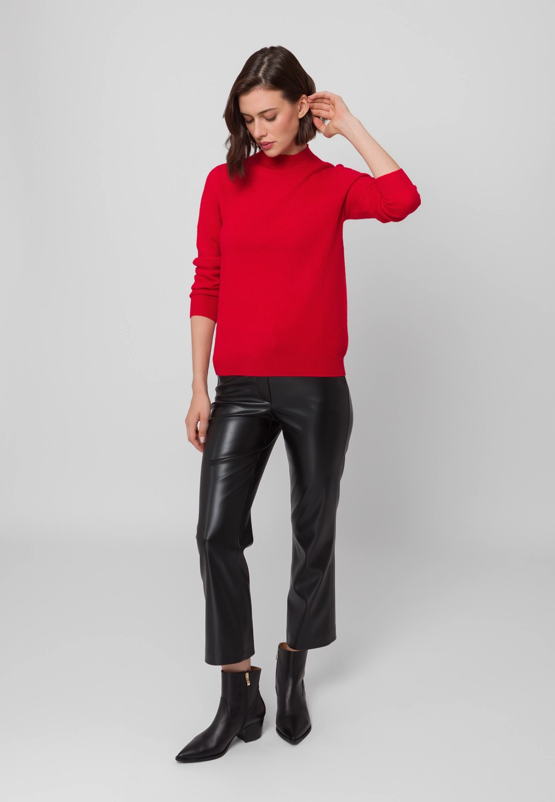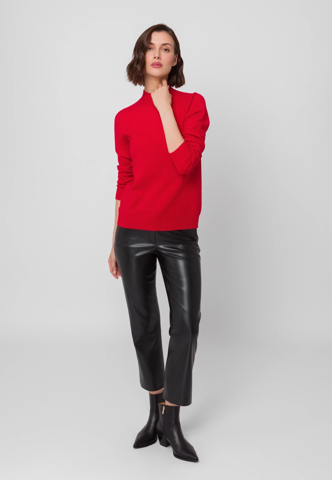Czerwony damski półgolf wykonany w 100% z wysokiej jakości wełny to klasyka, która łączy elegancję z komfortem noszenia. Miękka i ciepła dzianina doskonale otula ciało, zapewniając przyjemne uczucie ciepła w chłodniejsze dni. Półgolf w uniwersalnym kolorze czerni świetnie sprawdzi się w codziennych stylizacjach, jak i w zestawieniach bardziej eleganckich, tworząc ponadczasowy i stylowy look. Idealny do spodni, spódnic czy warstwowych zestawów. Półgolf dostępny także w wersji beżowej i czarnej.
