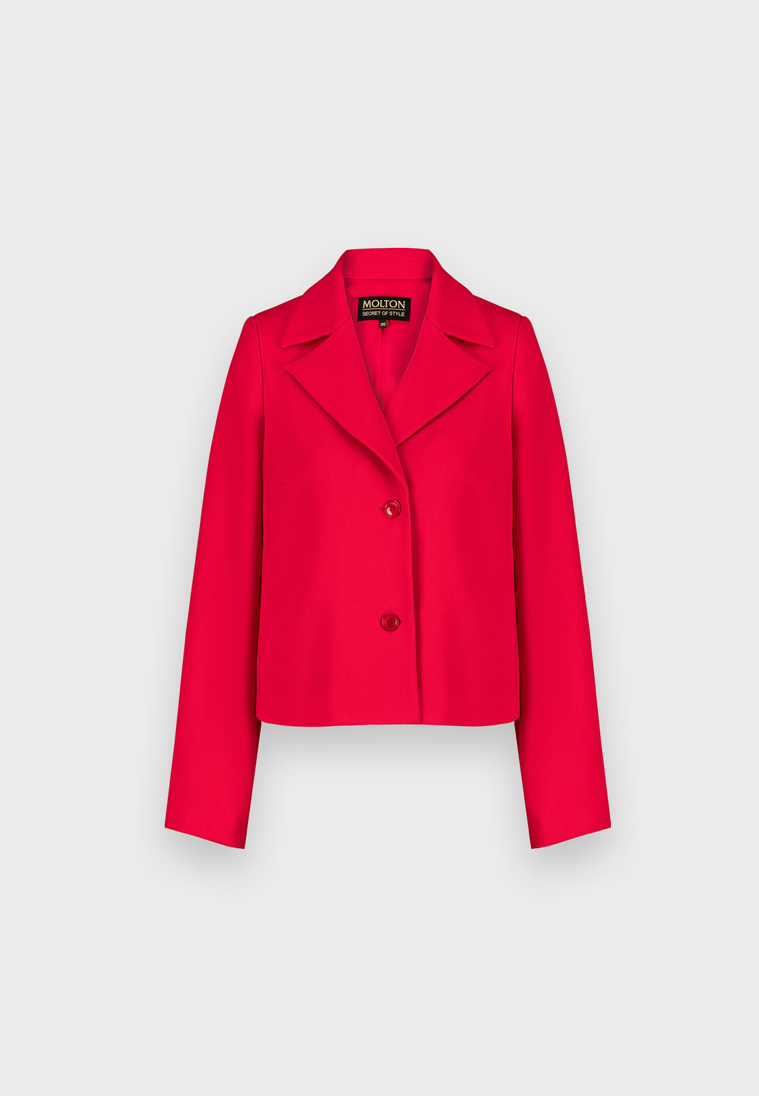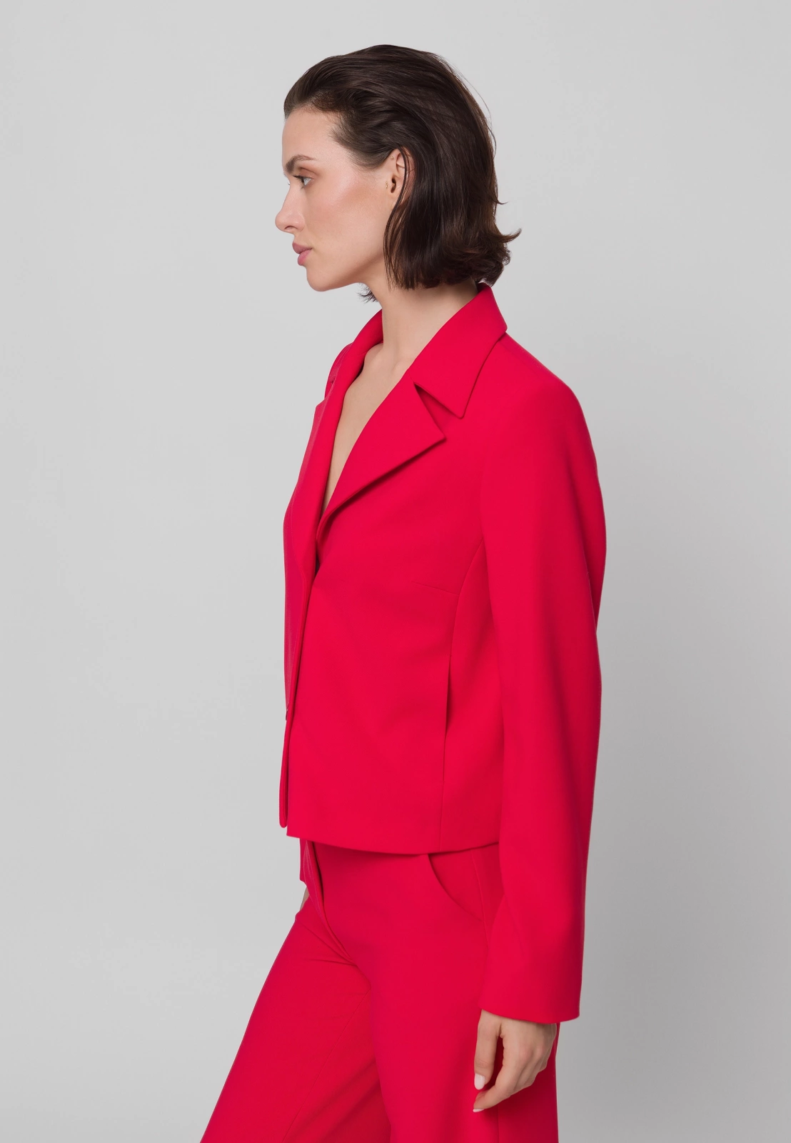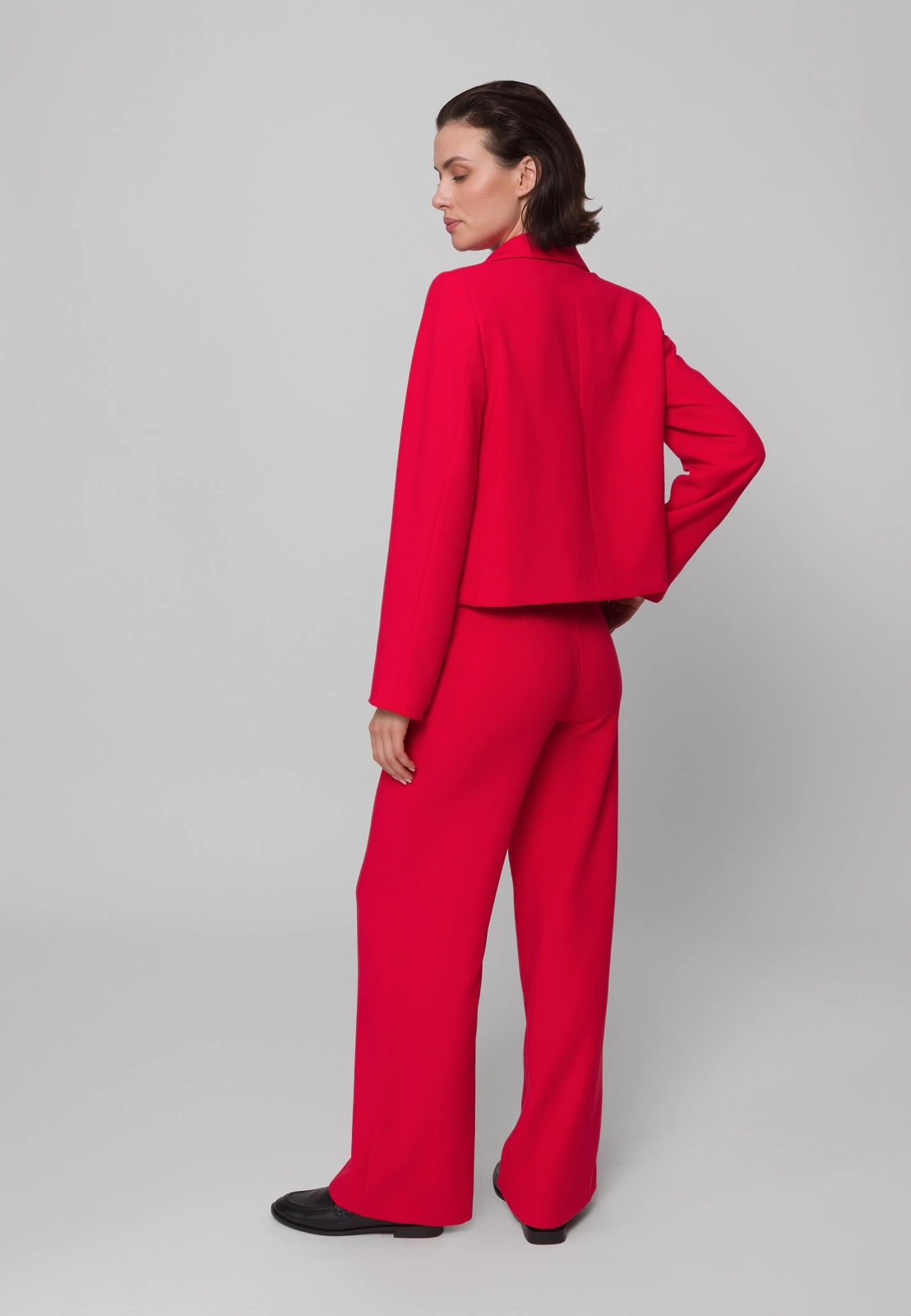 Żakiet damski o pudełkowym kroju w intensywnej czerwieni to propozycja dla kobiet, które cenią elegancję w nowoczesnym wydaniu. Wykonany z wysokiej jakości tkaniny z domieszką wiskozy i elastanu, łączy komfort noszenia z trwałością. Pudełkowy krój z klasycznymi klapami i prostą linią nadaje marynarce ponadczasowy charakter, a intensywny czerwony kolor dodaje energii i wyrazistości każdej stylizacji.