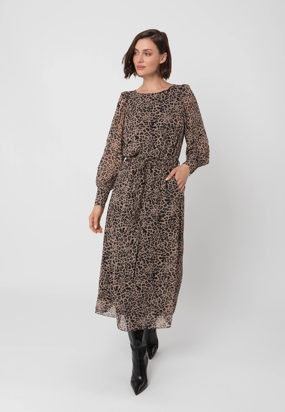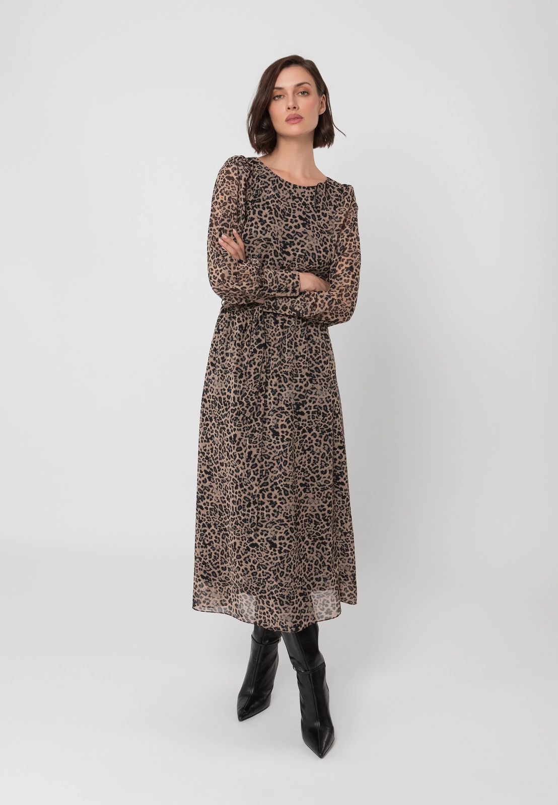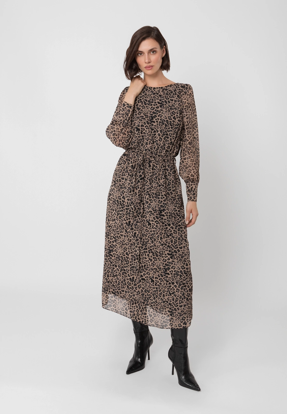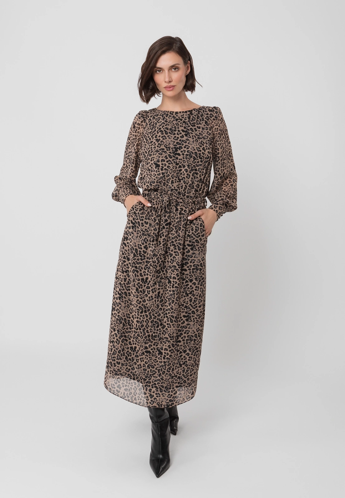 Długa sukienka w panterkowy print