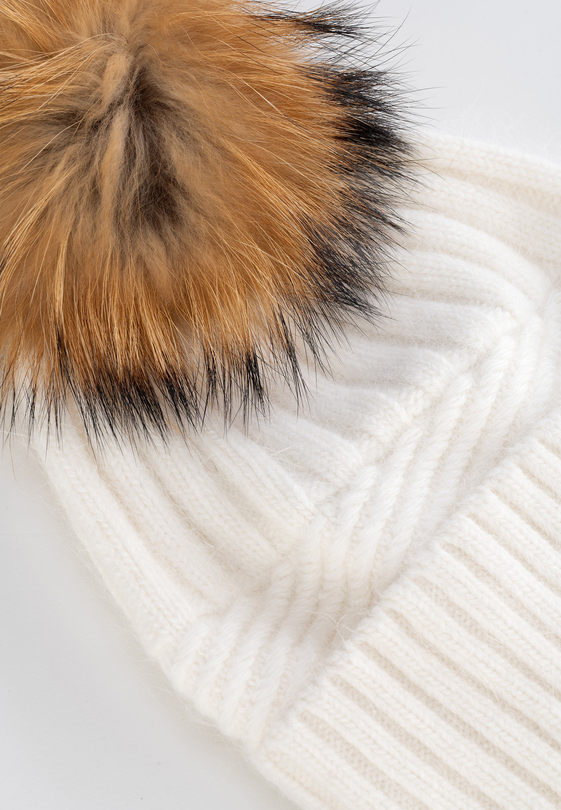 Ecru czapka z naturalnym pomponem
