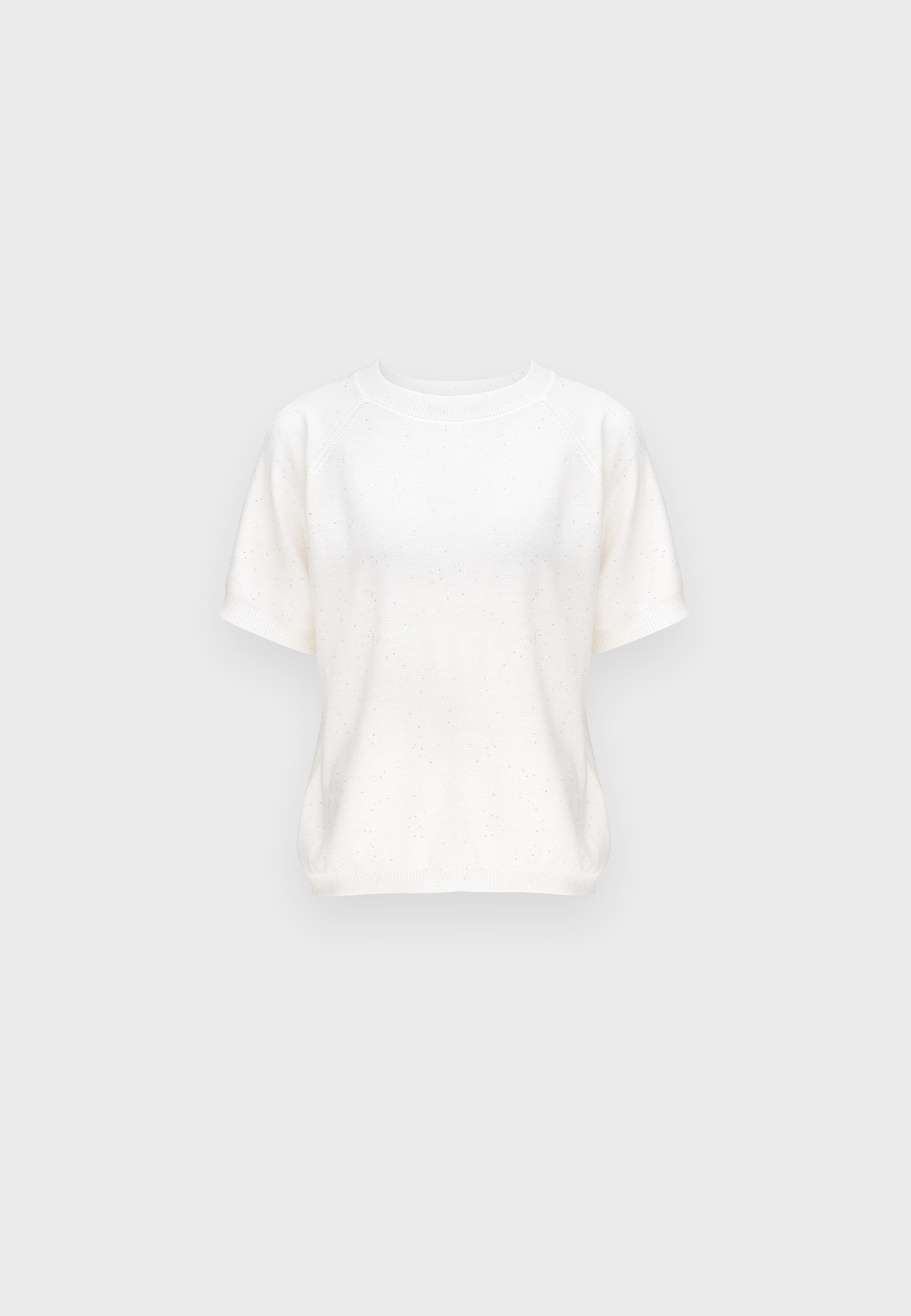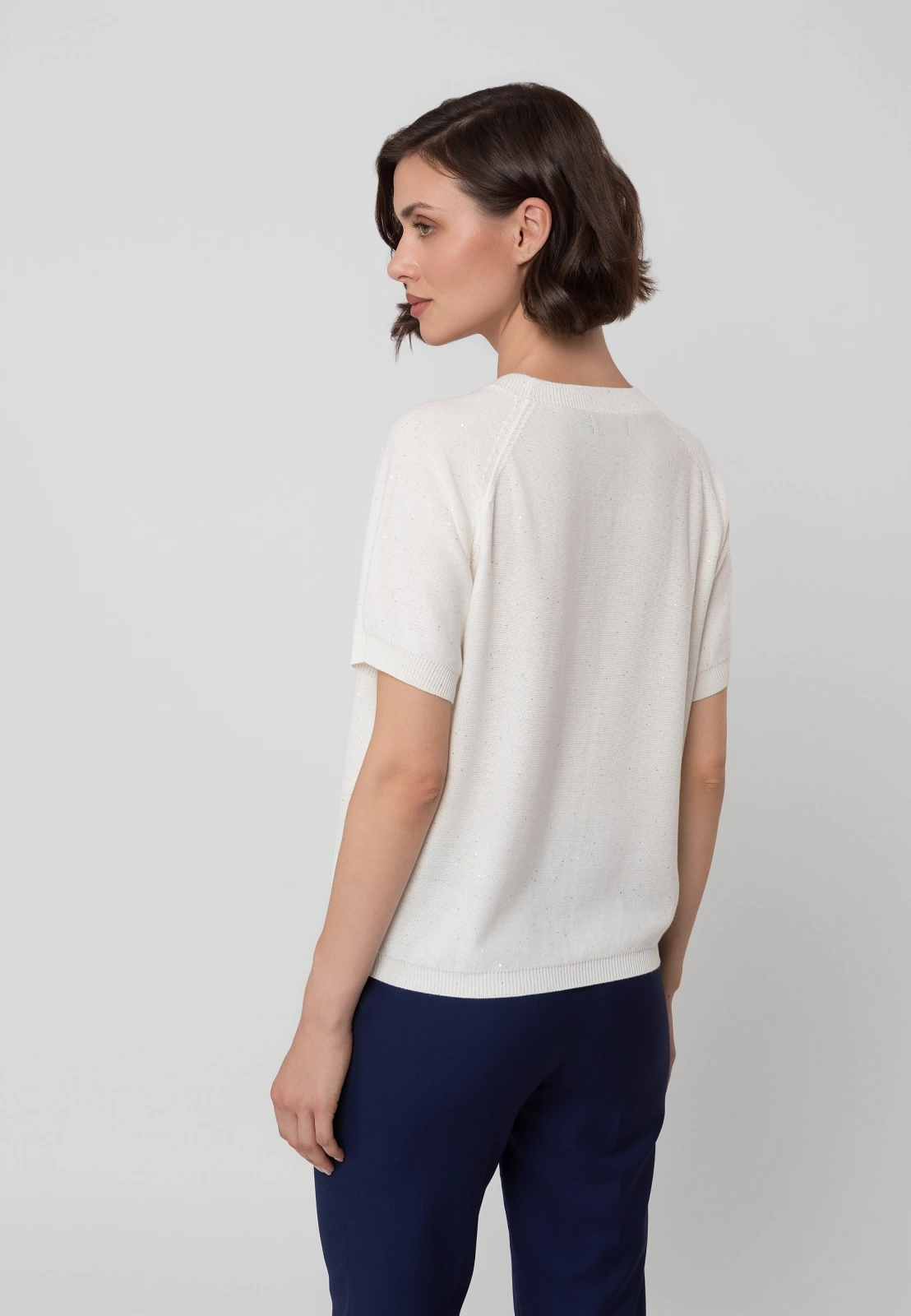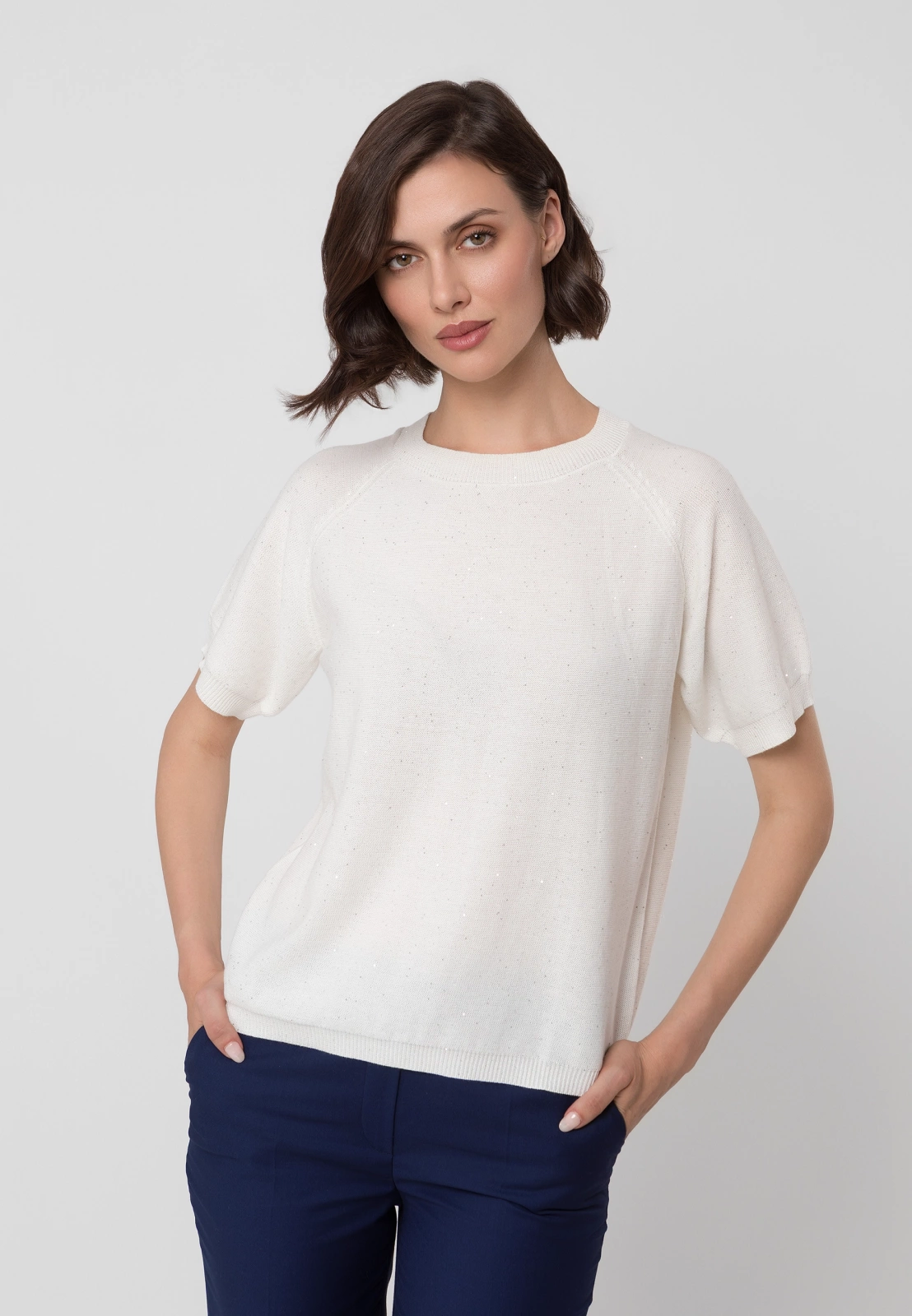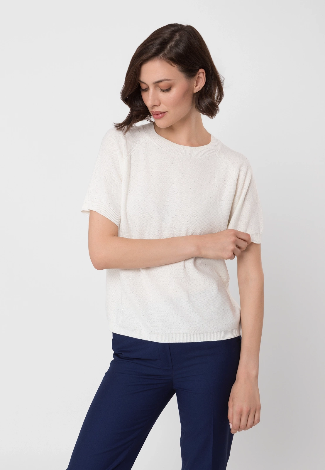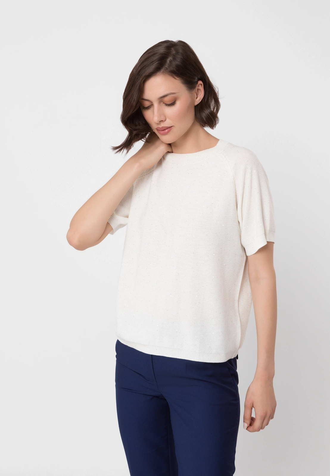Ecru dzianinowa bluzka z drobnymi cekinami