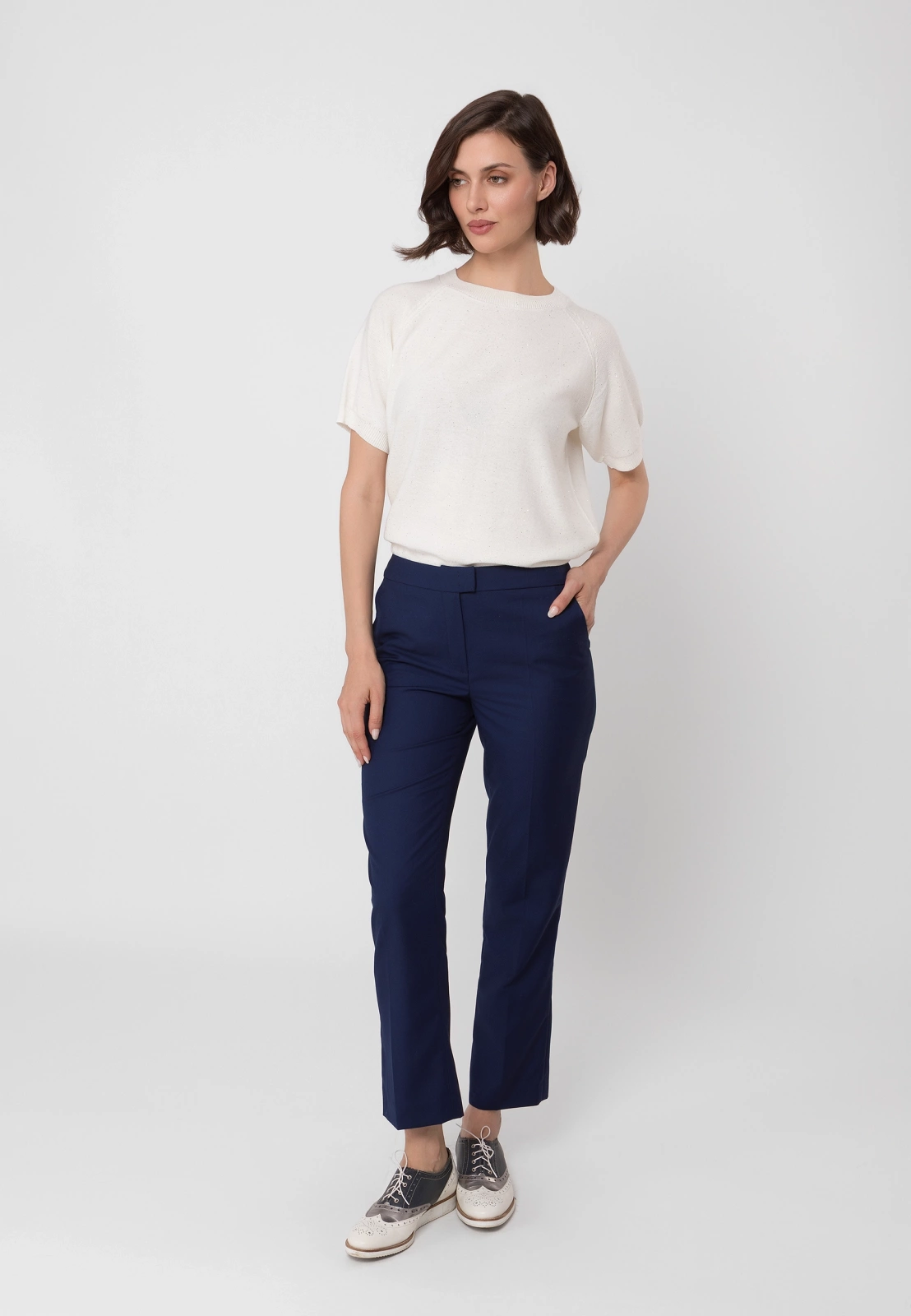Ecru dzianinowa bluzka z krótkim rękawkiem i subtelnym błyszczącym wykończeniem to propozycja na wyjątkowe okazje. Wykonana z domieszką wełny i ozdobiona drobnymi cekinami, łączy elegancję z komfortem noszenia. Bluzka doskonale sprawdzi się podczas świątecznych przyjęć, wieczornych spotkań czy innych uroczystych wydarzeń, dodając stylizacji szyku i odrobiny glamour. Idealna do spódnicy, eleganckich spodni lub w zestawieniu z jeansami dla mniej formalnego efektu. Bluzka dostępna także w wersji czarnej