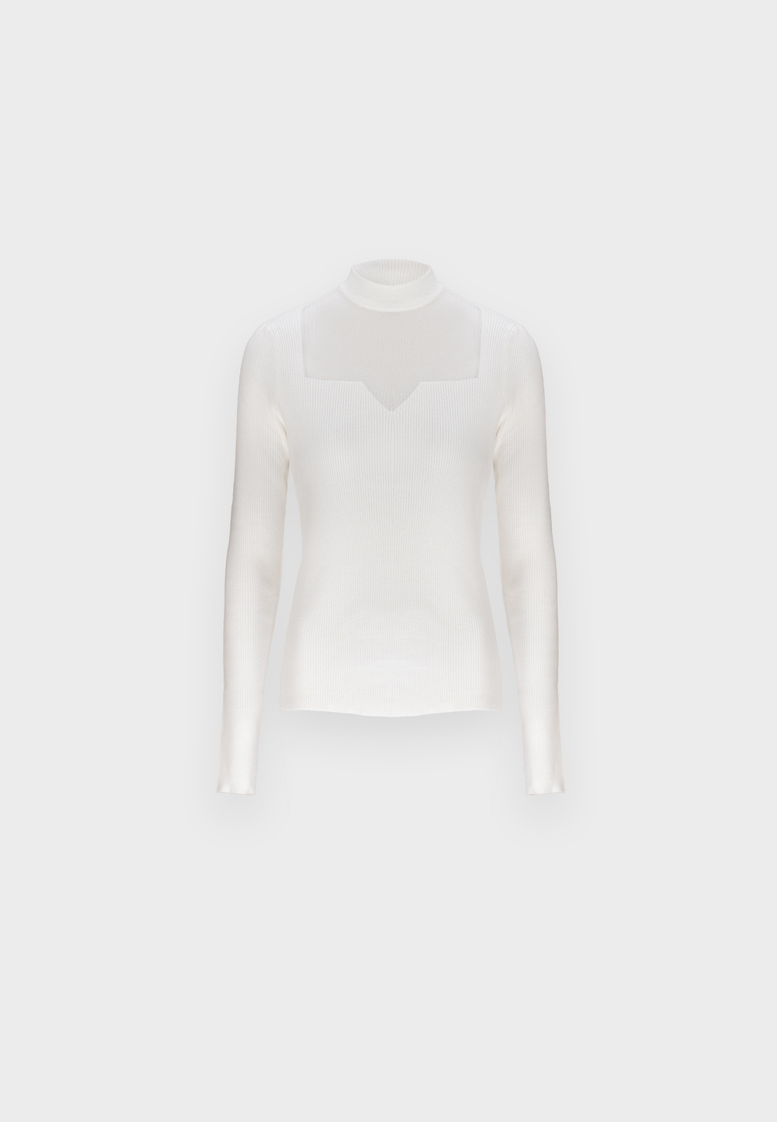 Ecru dzianinowy półgolf z ażurowym dekoltem