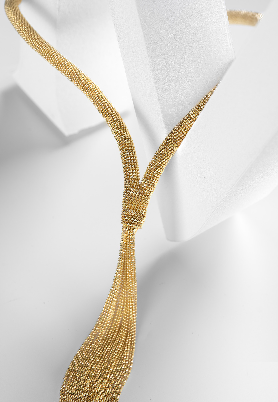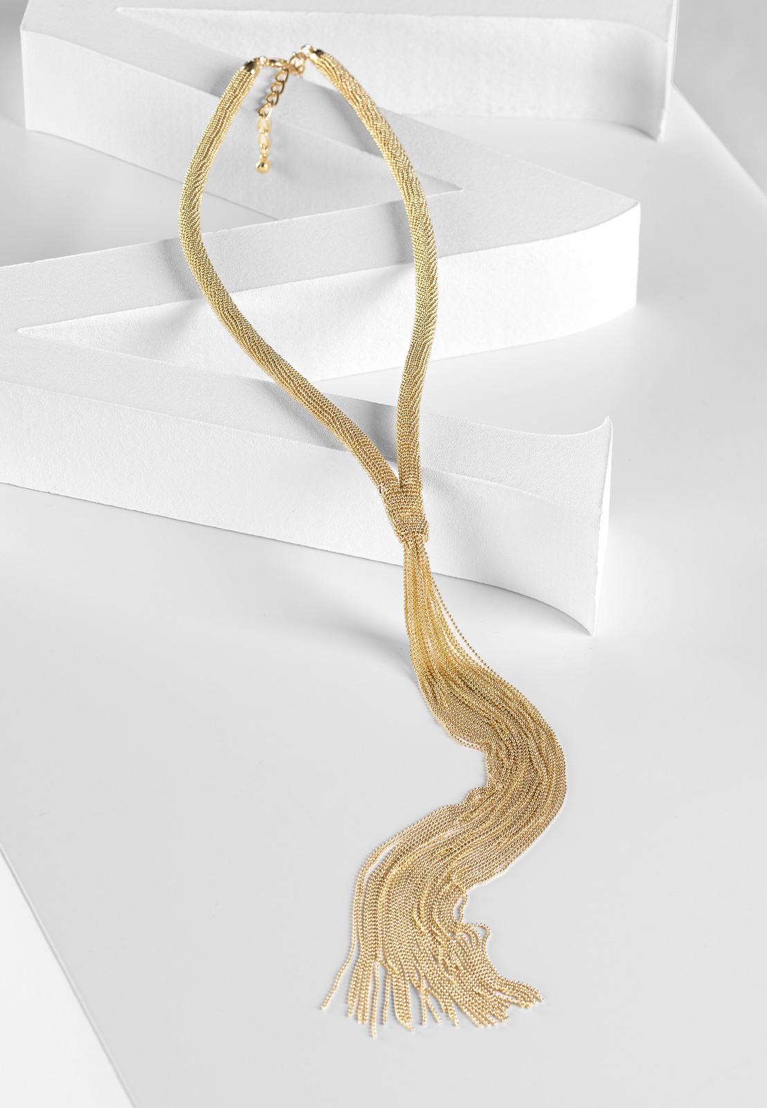 Gruby naszyjnik z chwostem z łańcuszków w złotym kolorze