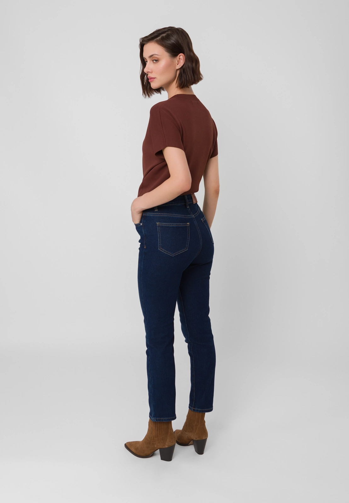 Granatowe jeansy slim fit o długości przed kostkę to połączenie klasyki i wygody. Model zapinany na suwak, z praktycznymi kieszeniami, wykonany z jeansu z dodatkiem elastanu, dzięki czemu zapewnia swobodę ruchów i komfort noszenia przez cały dzień. Idealne do casualowych stylizacji, świetnie komponują się zarówno z koszulami, żakietami jak i luźnymi topami.