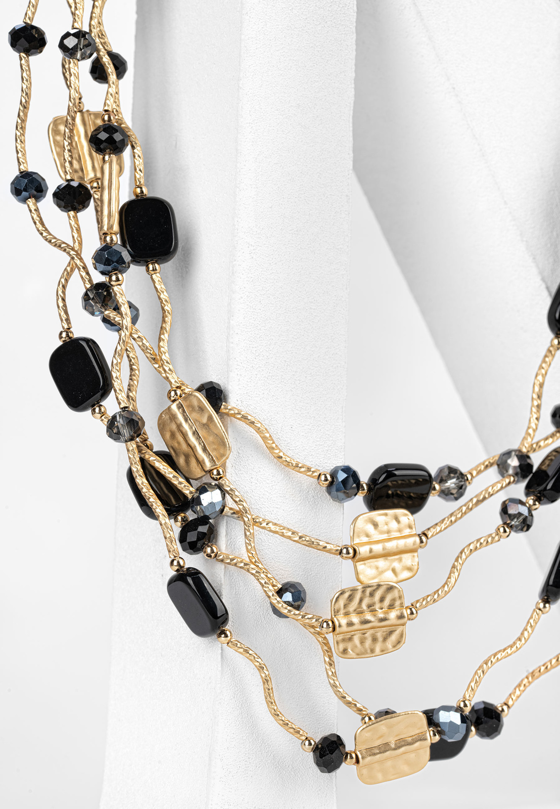 Kaskadowy naszyjnik z czarno-złotymi koralikami