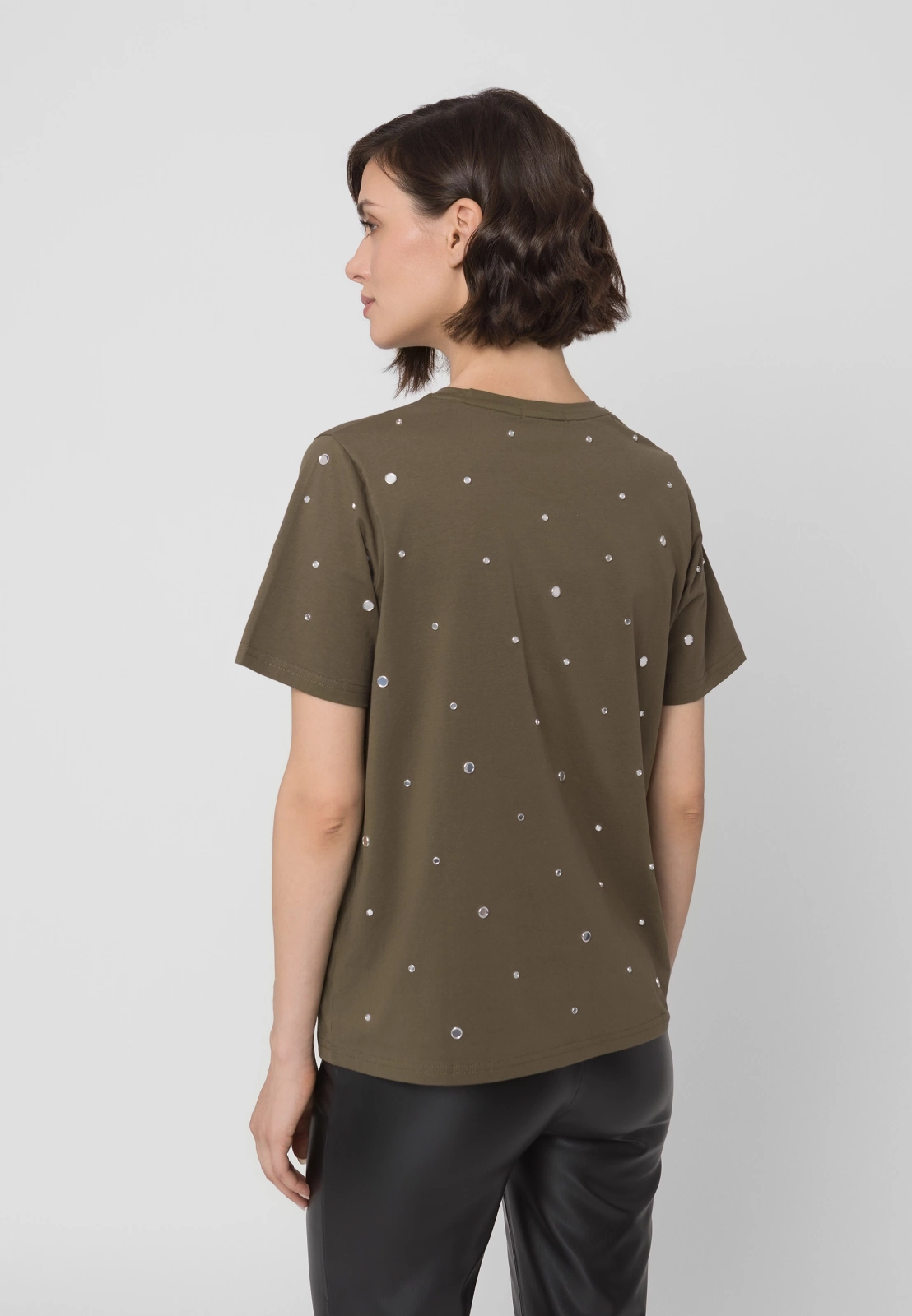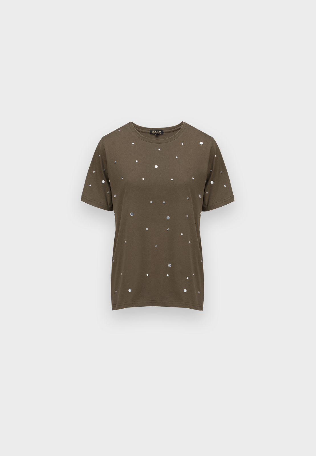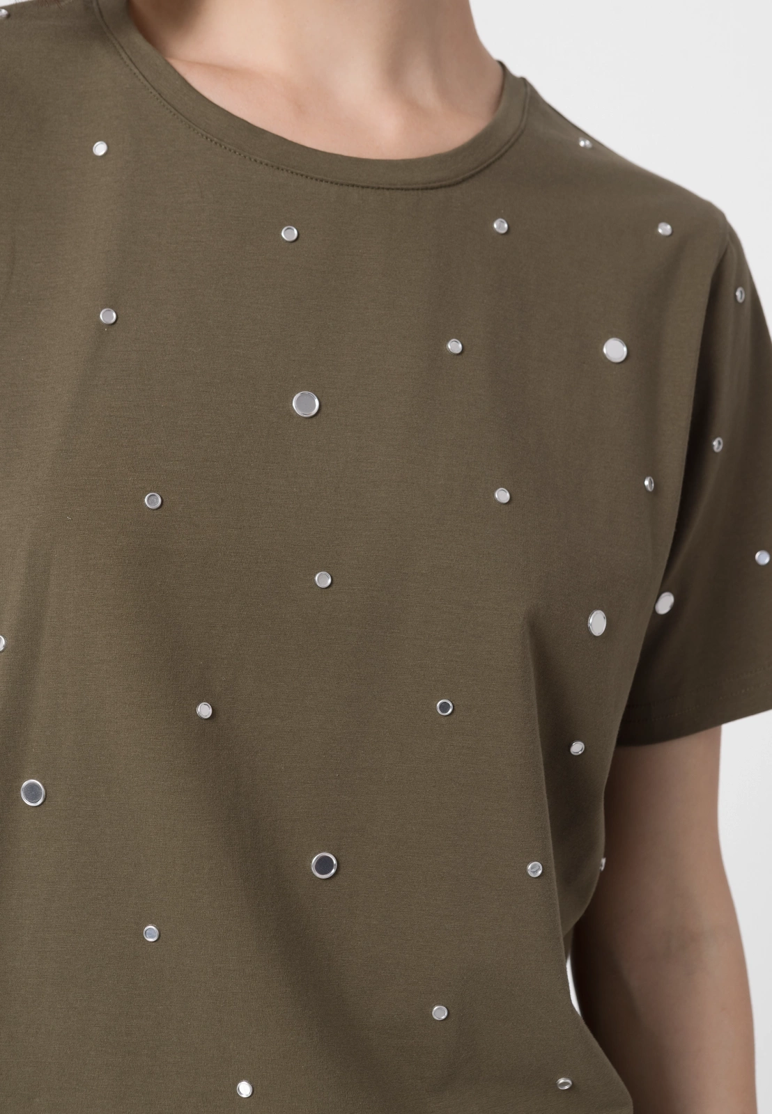 Khaki bawełniany t-shirt z dżetami