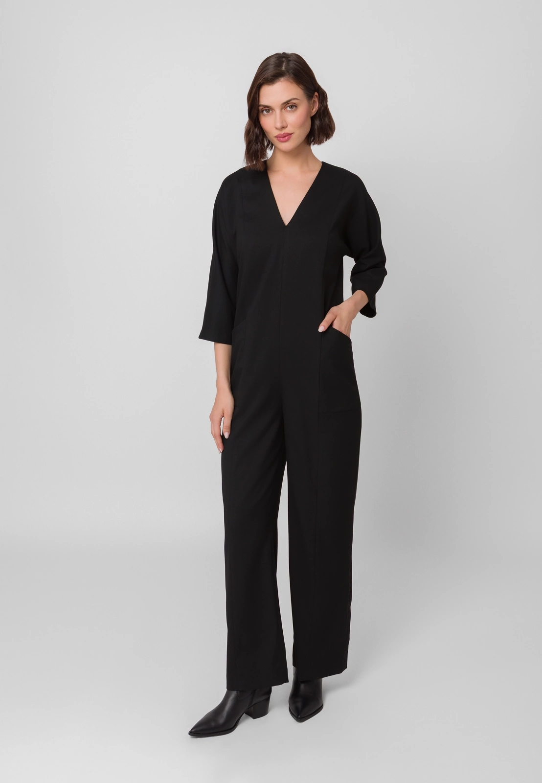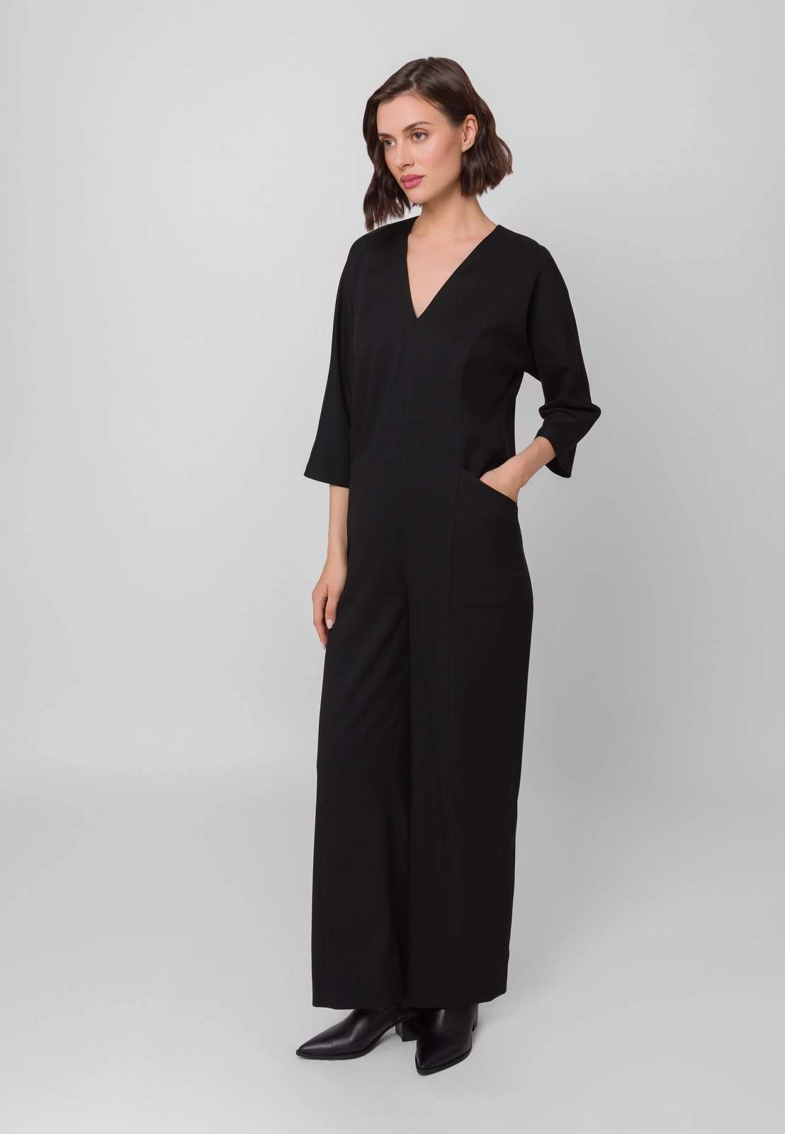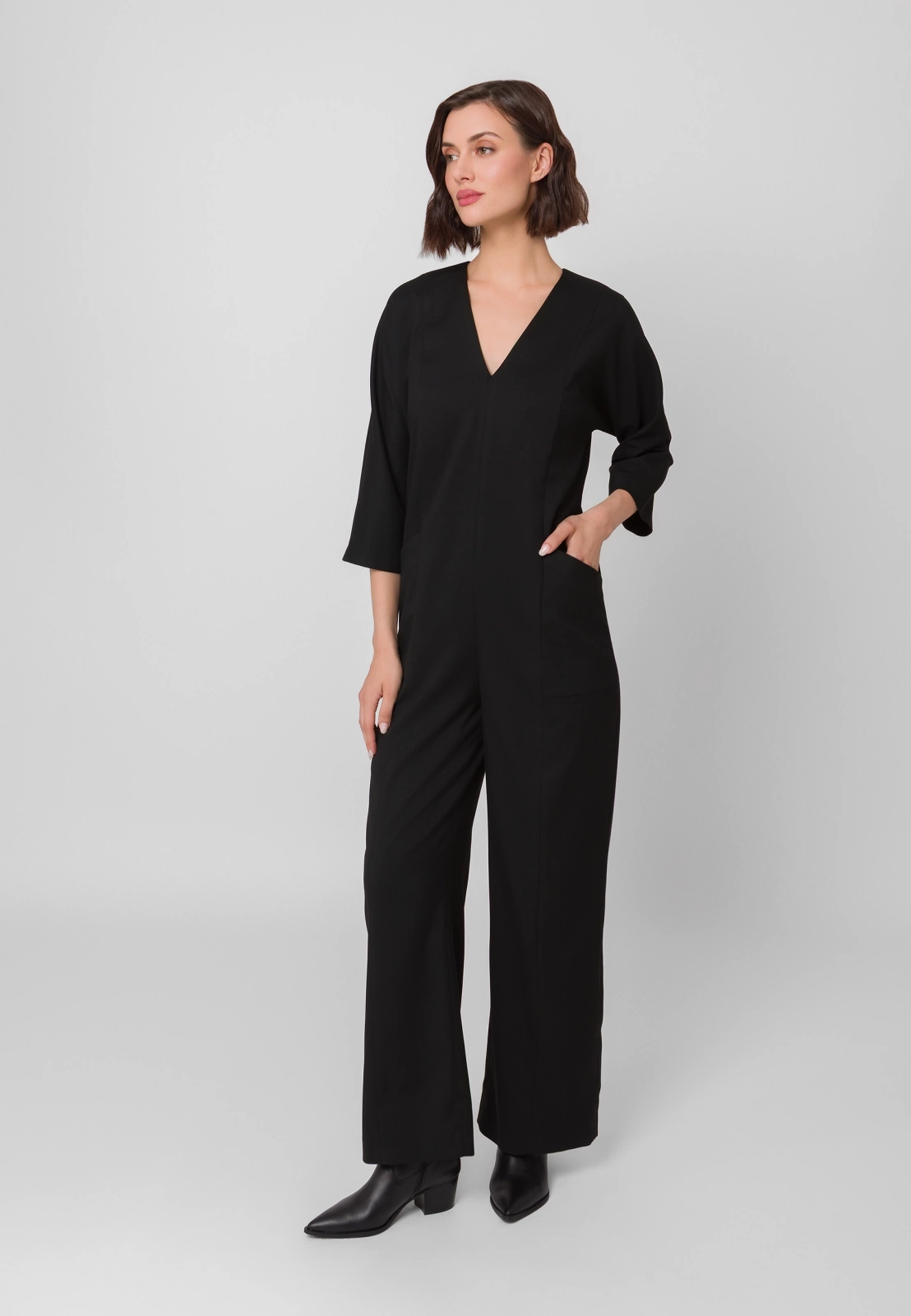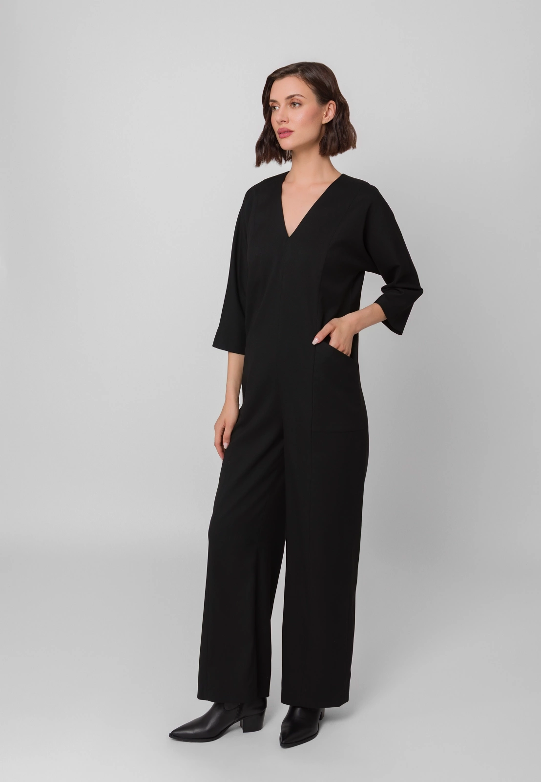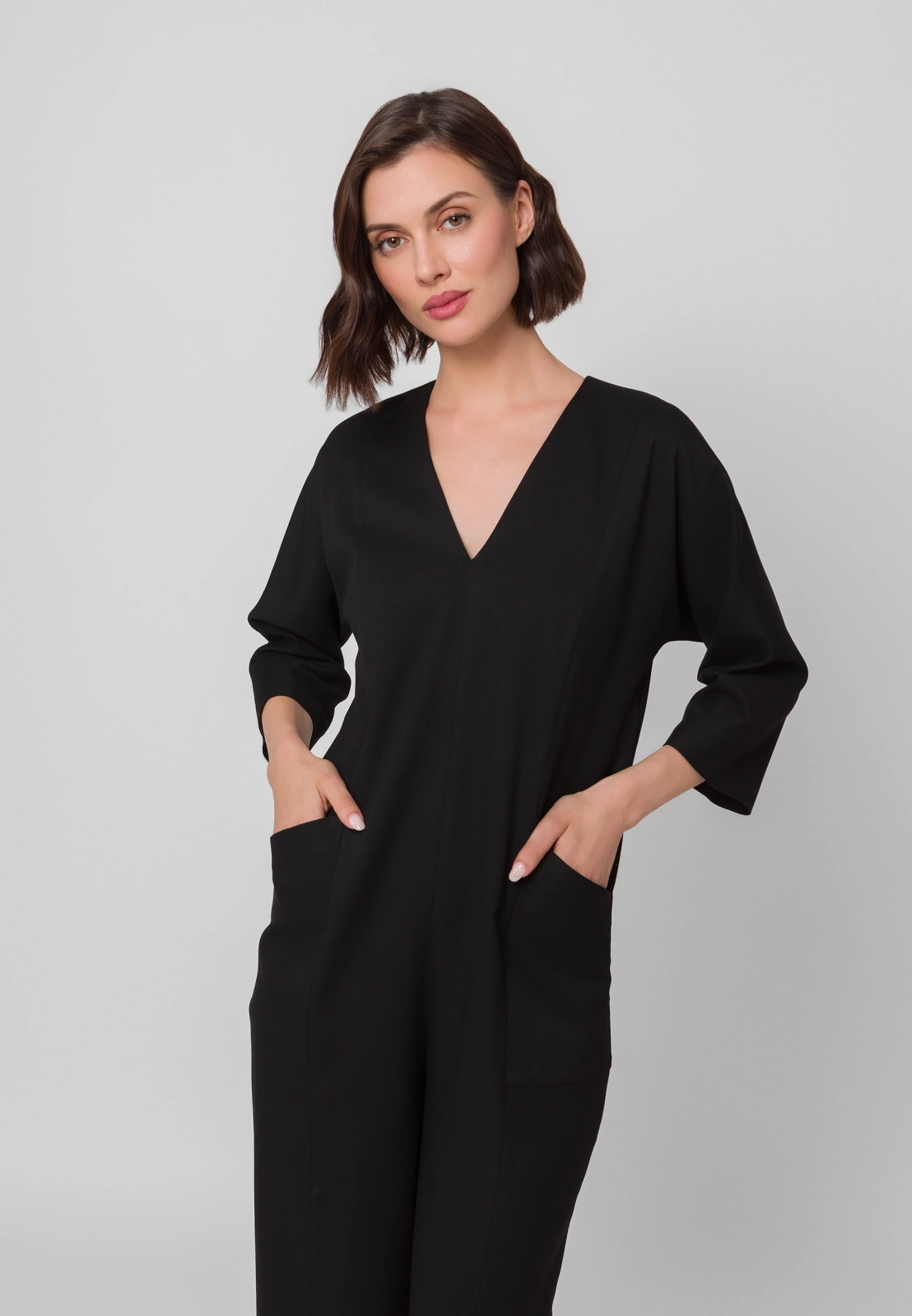 Postaw na wygodę i nowoczesny look w jednym! Damski kombinezon z dodatkiem wiskozy to idealne połączenie komfortu i stylu. Luźny krój zapewnia swobodę ruchów, a ozdobne kieszenie dodają całości modnego charakteru. Model wyróżnia się prostą, a zarazem elegancką formą: dekolt w serek, szerokie nogawki oraz rękaw 3/4.