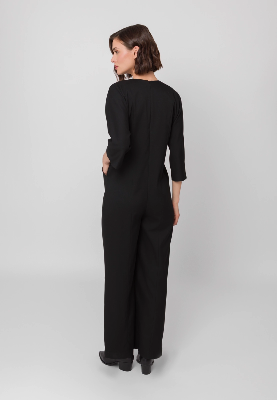 Uniwersalna czerń sprawia, że kombinezon pasuje zarówno na co dzień, jak i na wyjątkowe okazje. Z łatwością wystylizujesz go z trampkami, tworząc casualowy outfit, lub ze szpilkami – gdy chcesz postawić na kobiecą elegancję. To propozycja, która otwiera przed Tobą wiele możliwości stylizacji i zawsze prezentuje się nowocześnie.