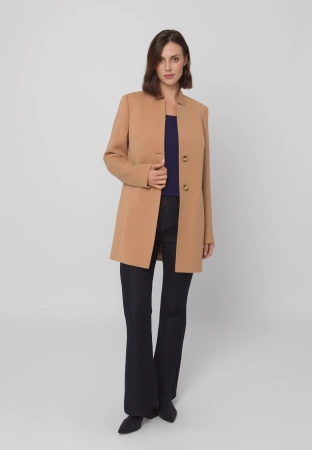 Krótki camelowy płaszcz z wiskozą