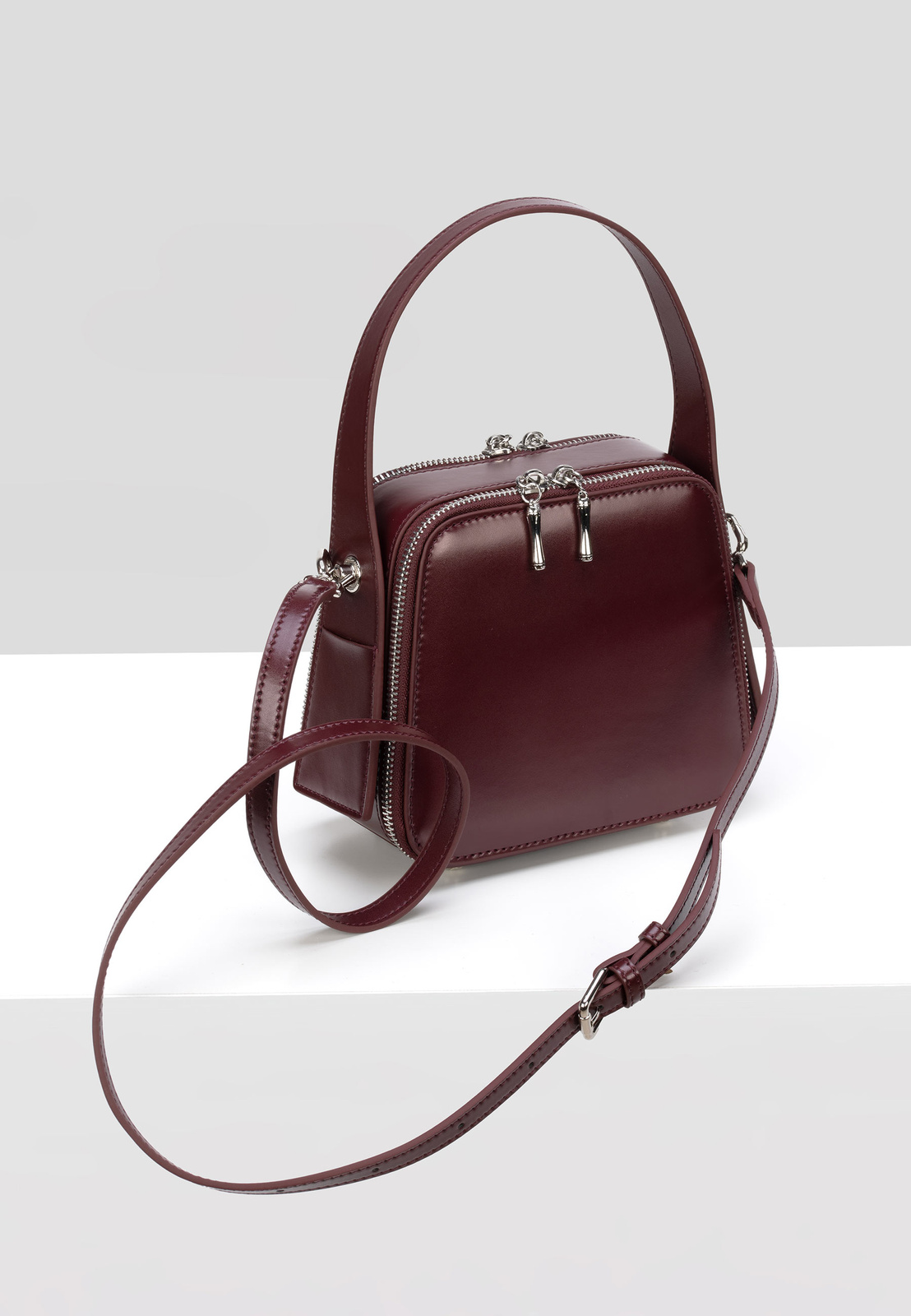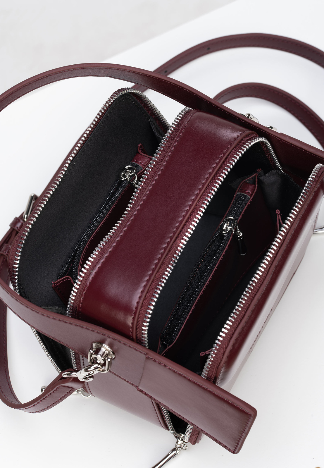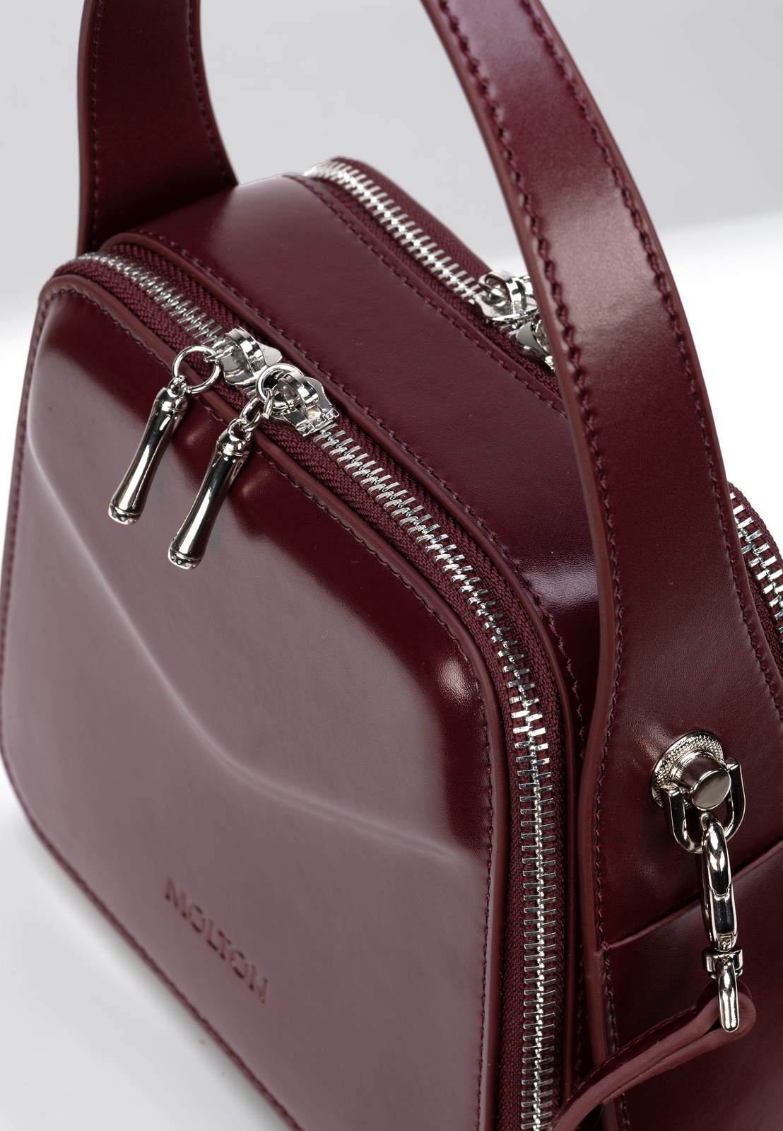 Wyjątkowy kuferek wykonany z błyszczącej skóry naturalnej to idealny dodatek, który łączy elegancję z funkcjonalnością. Jego ponadczasowy fason w głębokim, bordowym kolorze doskonale uzupełni zarówno eleganckie stylizacje do pracy, jak i codzienne, bardziej swobodne zestawy. Torebka wyposażona jest w solidną rączkę, dzięki której można nosić ją w dłoni, oraz dopinany pasek, który pozwala wygodnie zakładać ją na ramię. Dwie praktyczne przegrody na suwak gwarantują wygodną organizację i bezpieczeństwo przechowywanych rzeczy. To model, który podkreśli charakter każdej stylizacji i sprawdzi się na wiele okazji. Dostępny również w wersji czarnej.
