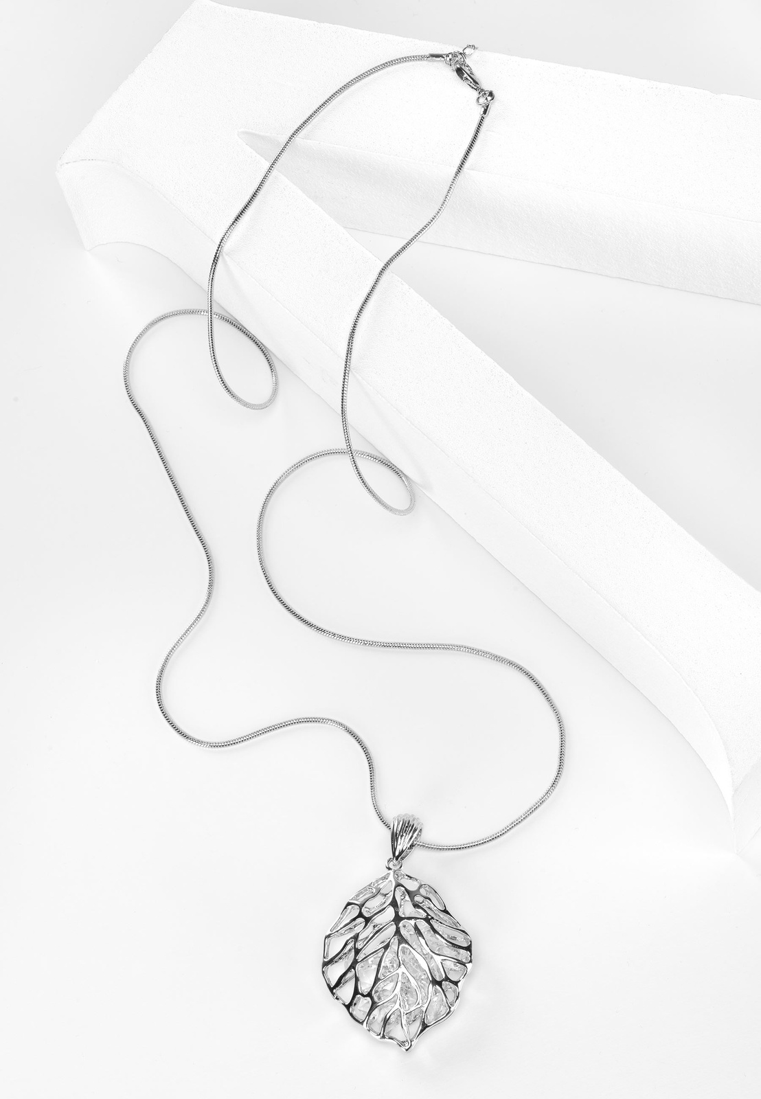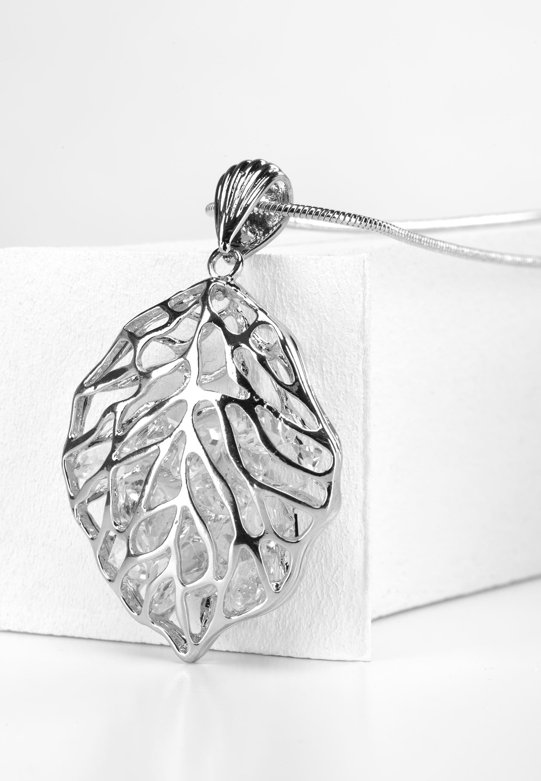 Naszyjnik z zawieszką w kształcie liścia z błyszczącymi kamieniami