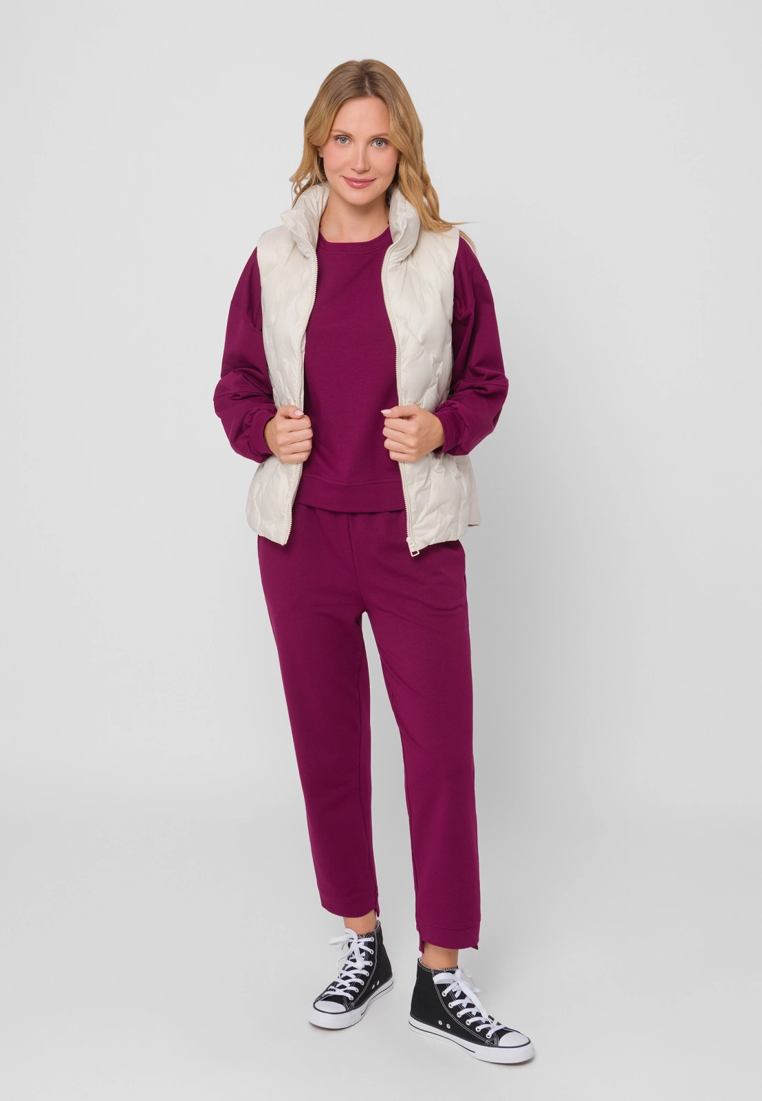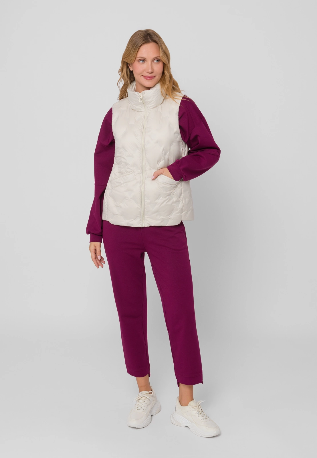 Klasyczna kamizelka puchowa w jasnym, śmietankowym kolorze to klasyczne okrycie wierzchnie, które świetnie będzie pasowało do wielu casualowych stylizacji. Ma pikowaną powierzchnię, zamek błyskawiczny i jest wypełniona naturalnym kaczym puchem, który doskonale grzeje. Prosty fason dobrze prezentuje się na różnych typach kobiecych sylwetek. Dostępna jest też w czarnym i beżowym kolorze.