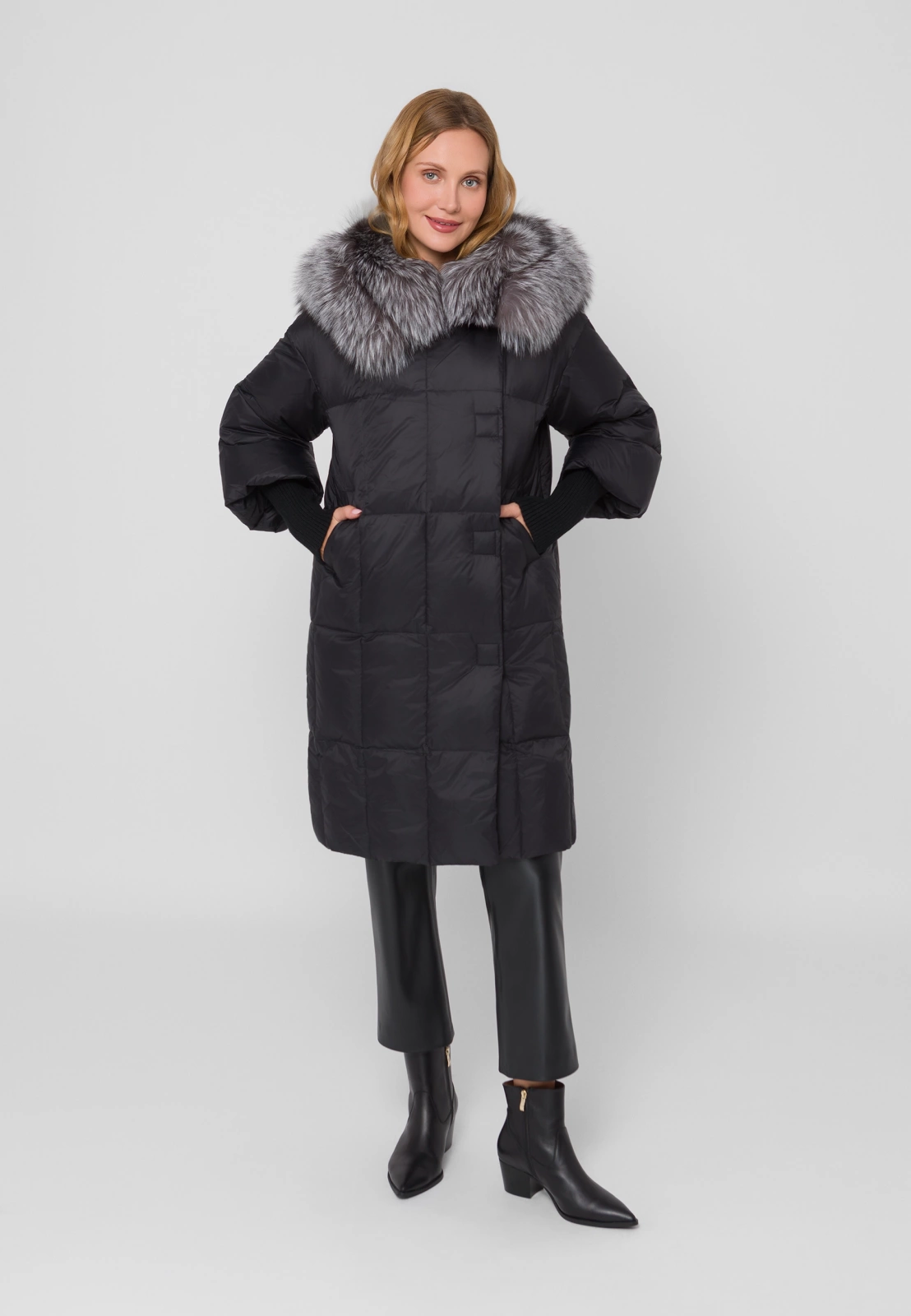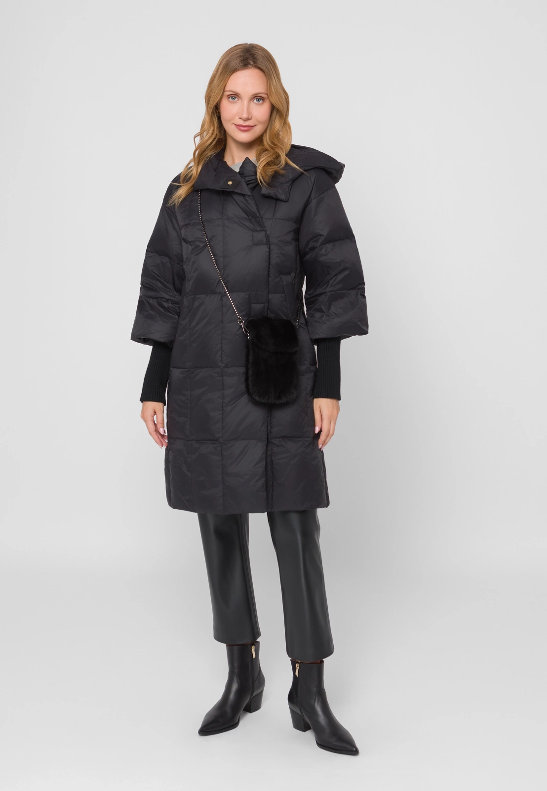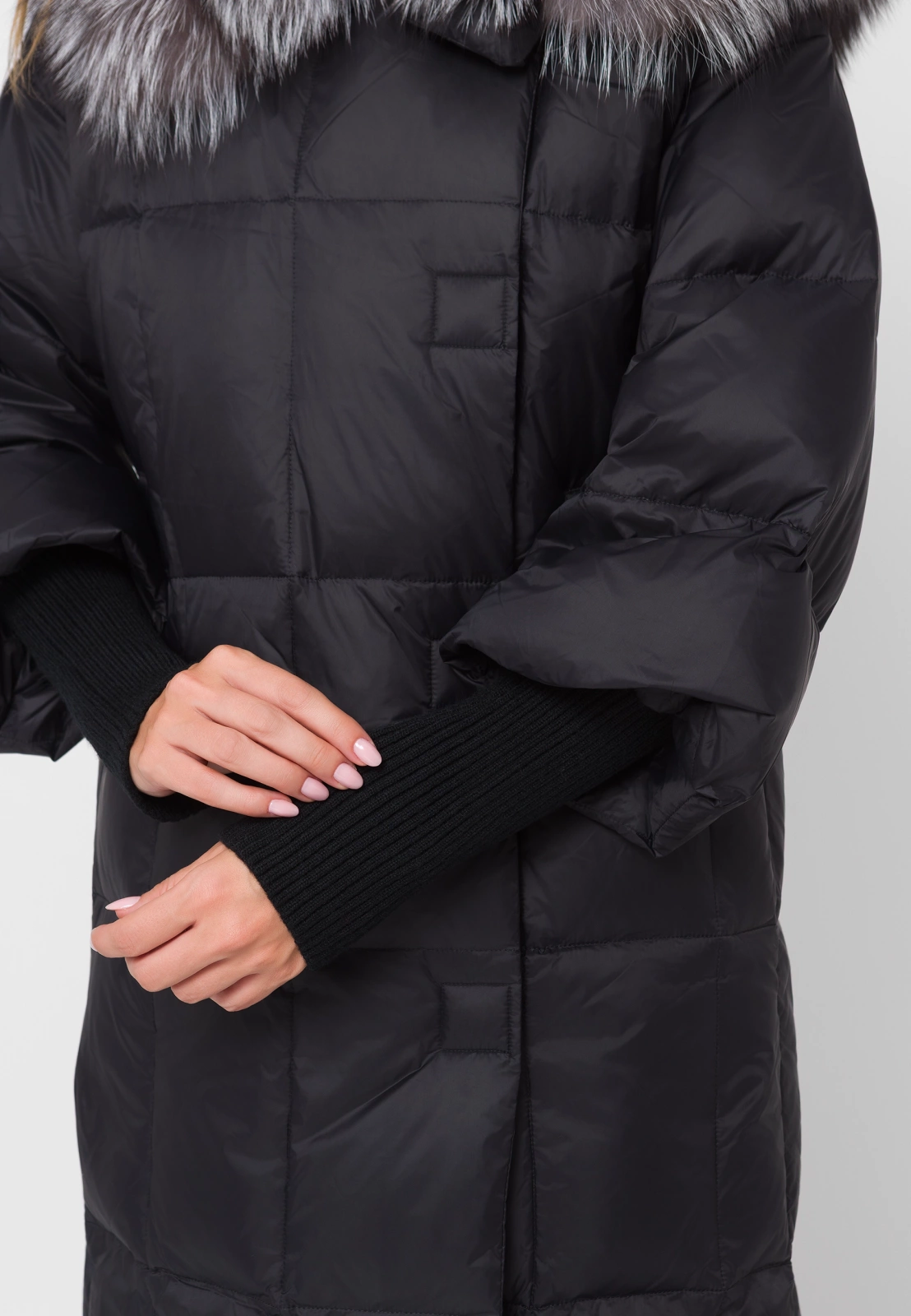 Długa kurtka puchowa nie musi mieć casualowego charakteru, może być też eleganckim zamiennikiem płaszcza. Gustowny fason z zakrytą linią zapięcia i naturalnym wypełnieniem świetnie prezentuje się na sylwetce – pasuje zarówno do spodni, jak i do sukienek. Zwężane na końcach mankiety dodają sylwetce lekkości. Kaptur wykończony jest naturalnym futrem, które jest odpinane.