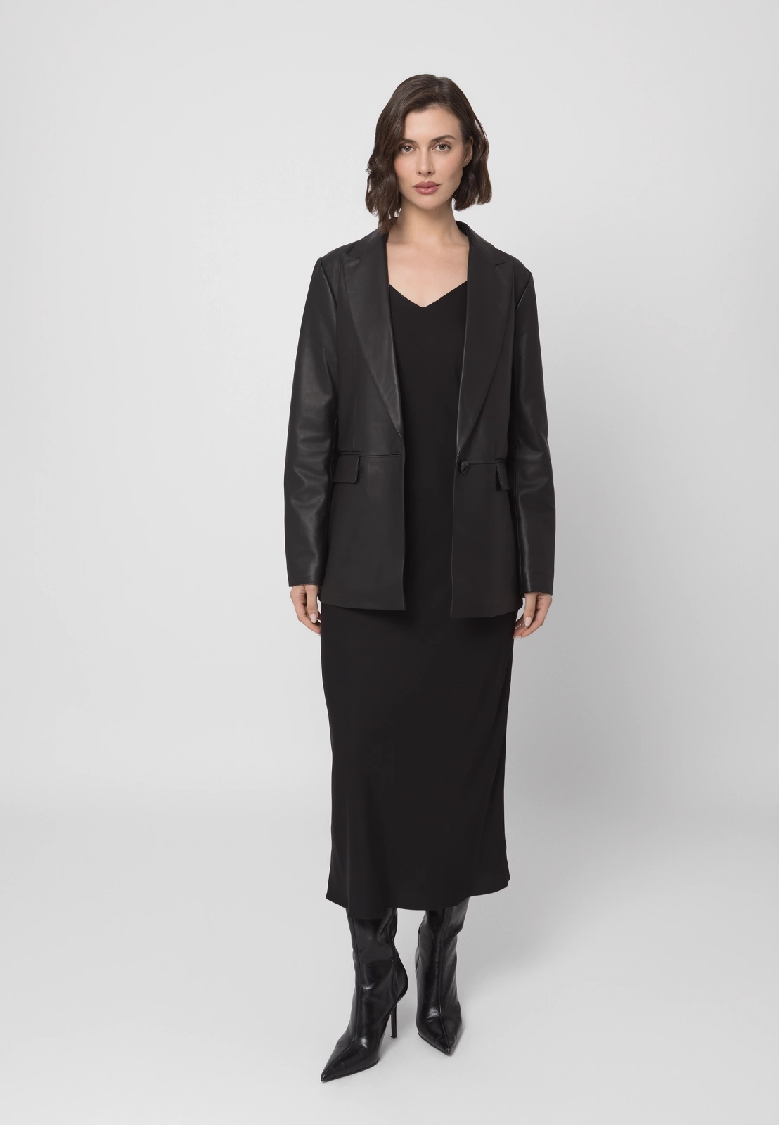 Ta sukienka to must-have w Twojej garderobie na nadchodzący sezon ponadczasowy model, który dzięki uniwersalnemu fasonowi i głębokiej czerni sprawdzi się tej jesieni w wielu stylizacjach.