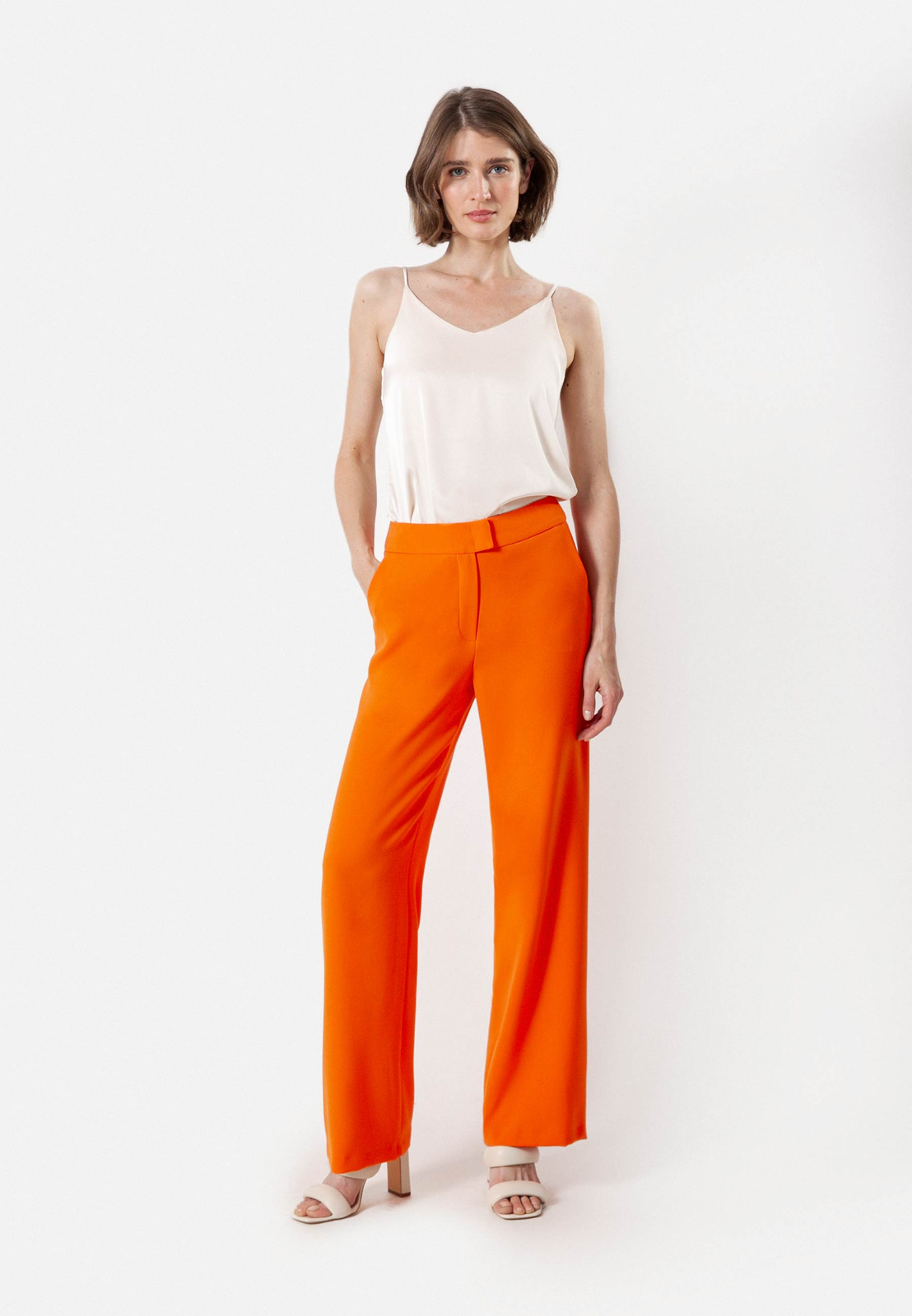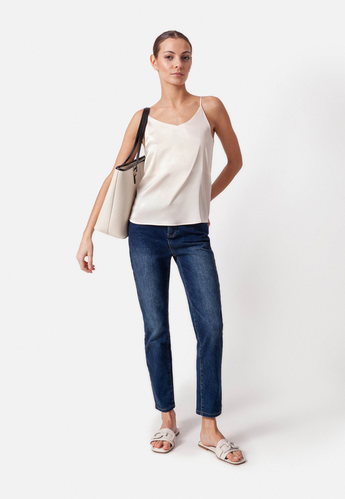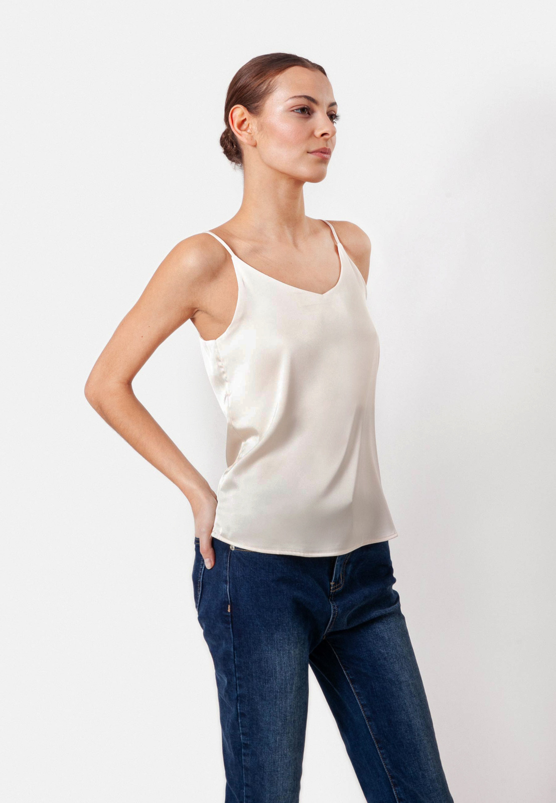 Satynowy top ecru na cienkich ramiączkach