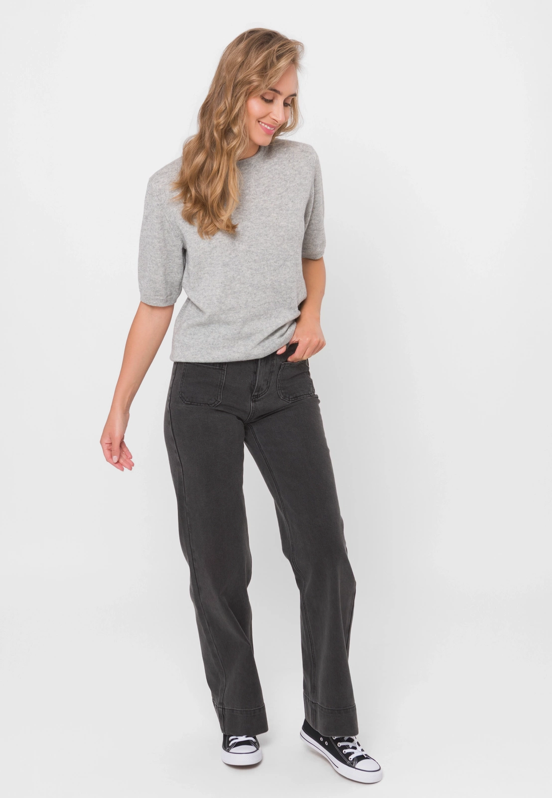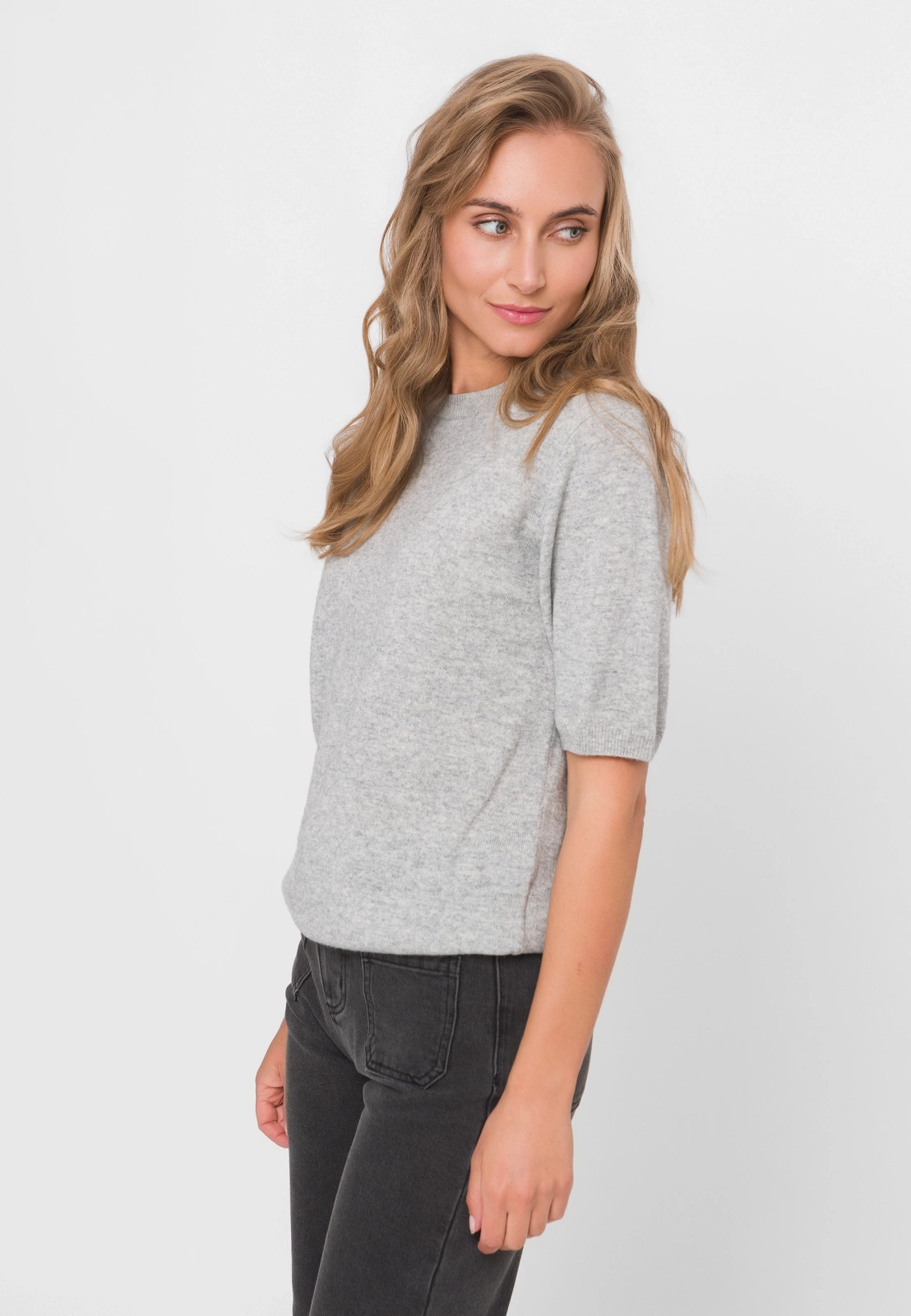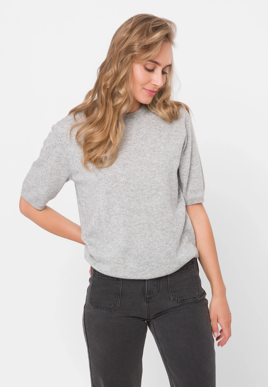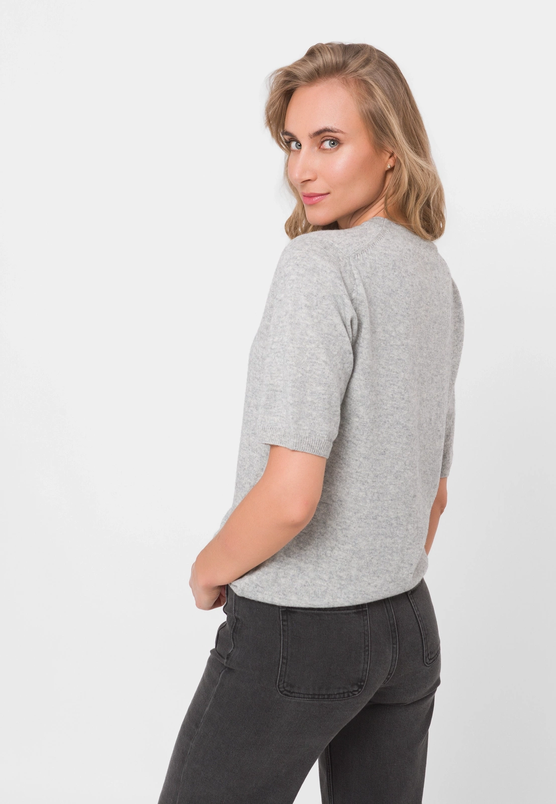 Szara bluzka damska wykonana z wysokiej jakości mieszanki wełny merino i z domieszką kaszmiru zapewnia przyjemną miękkość, ciepło i luksusowy komfort noszenia. Bluzka ma lekko bufiasty, dłuższy rękaw i bardzo kobiecy fason, który subtelnie podkreśla sylwetkę. Doskonale sprawdzi się jako elegancka warstwa pod marynarki, płaszcze czy swetry, dodając stylu i klasy każdej codziennej lub wyjściowej stylizacji. Dostępna także w kolorze ecru