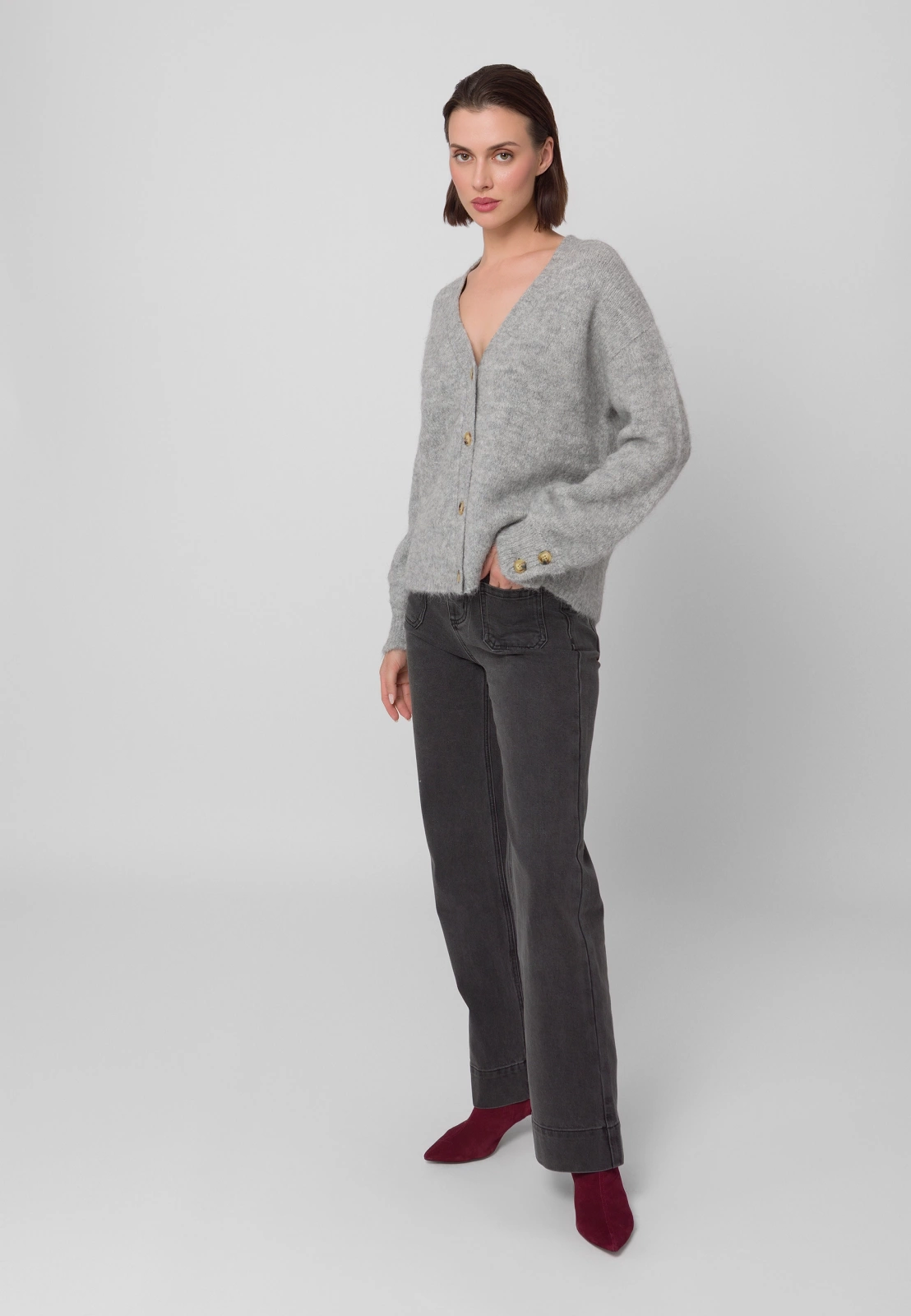 Szare jeansy z szeroką nogawką