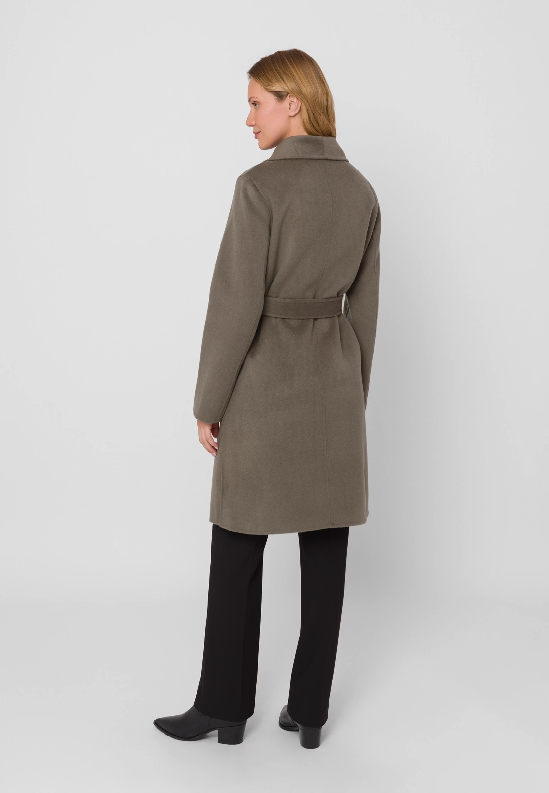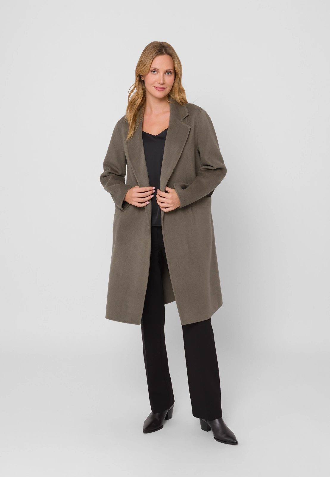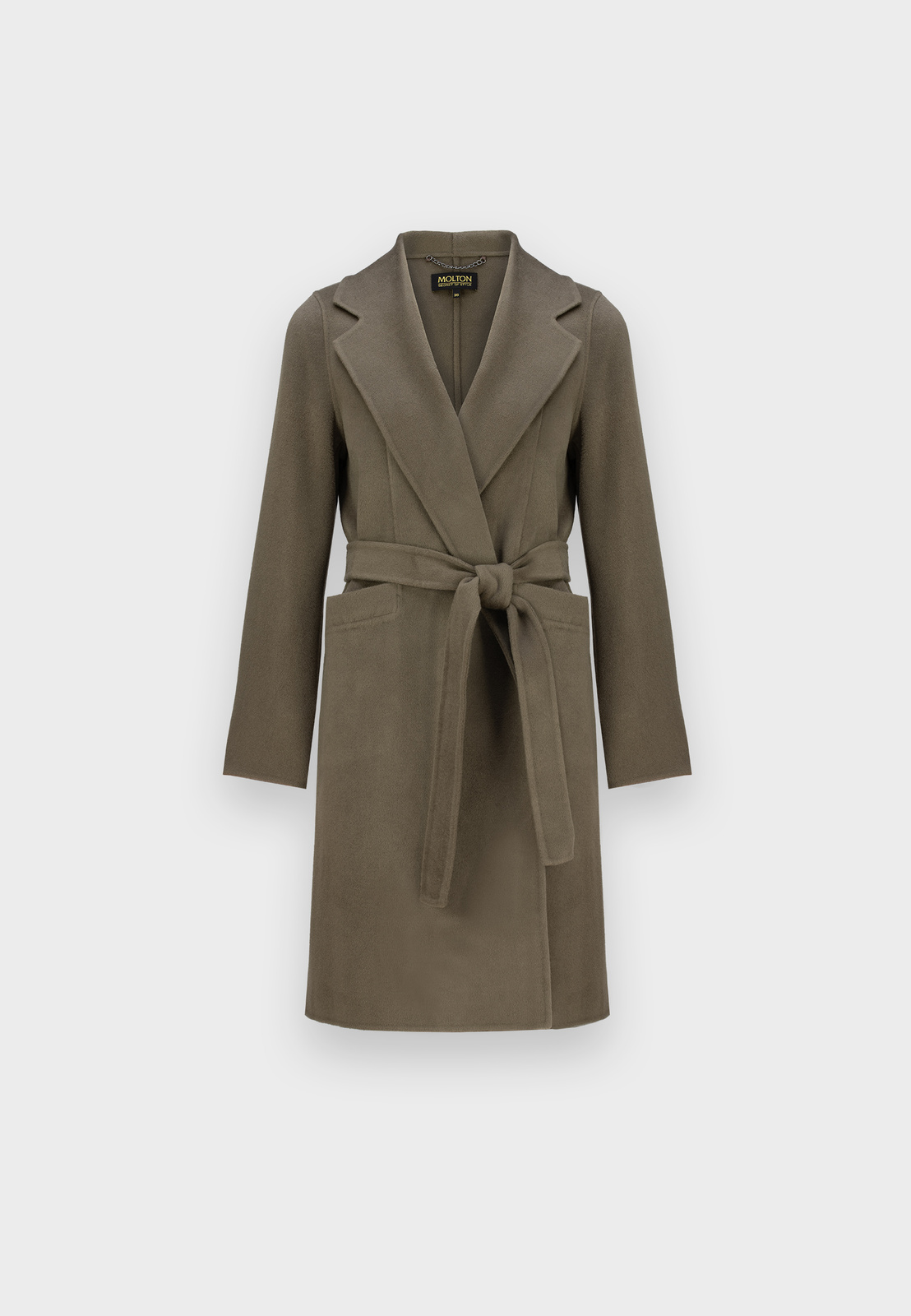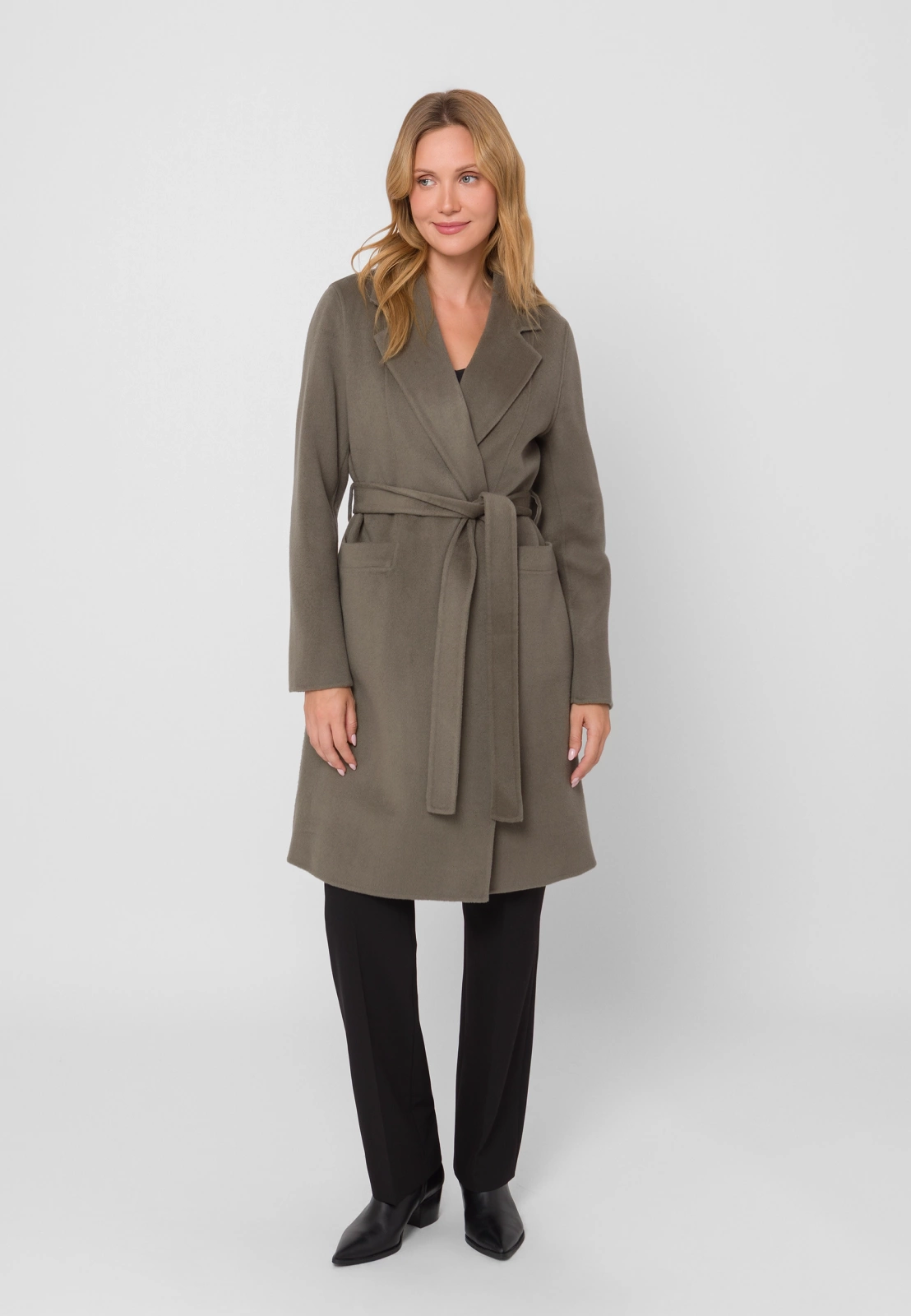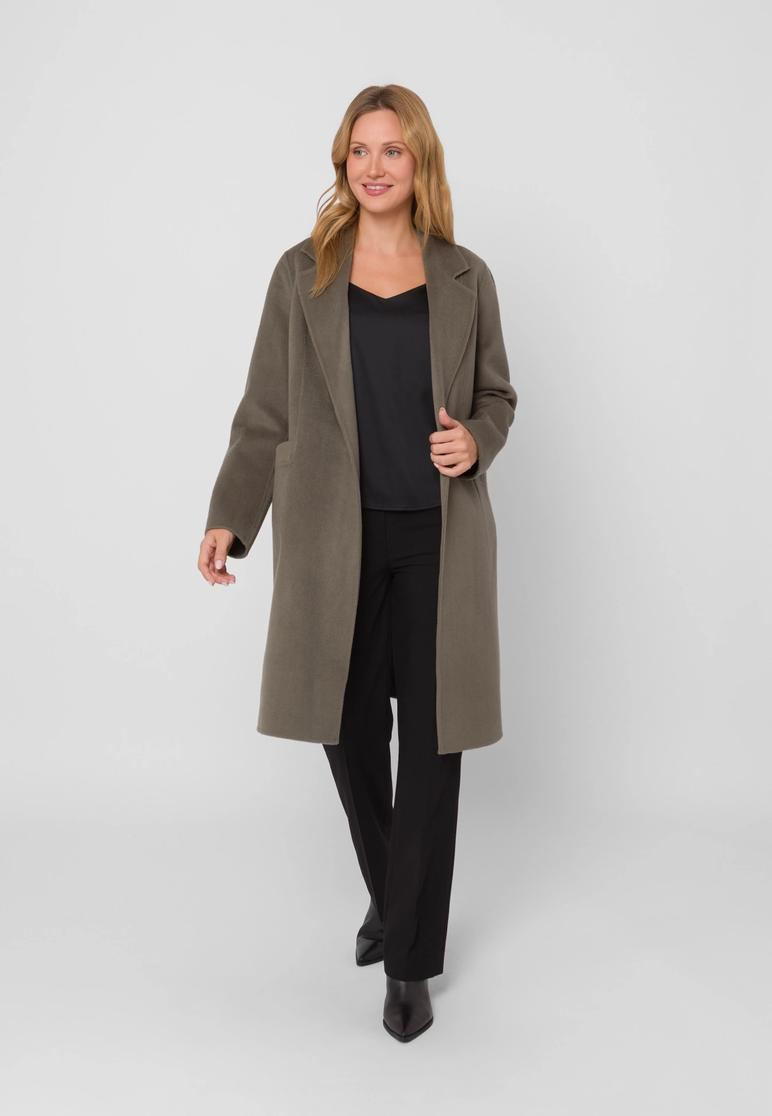Wiązany płaszcz w odcieniu khaki, wykonany w 100% z miękkiej, wysokogatunkowej wełny double face, to idealne połączenie stylu i wygody. Lekki, ciepły i przyjemny w dotyku, doskonale sprawdzi się w codziennych, casualowych stylizacjach. Fason przed kolano z wiązaniem w pasie podkreśla sylwetkę i dodaje kobiecej lekkości, czyniąc ten model uniwersalnym wyborem na jesienne dni.