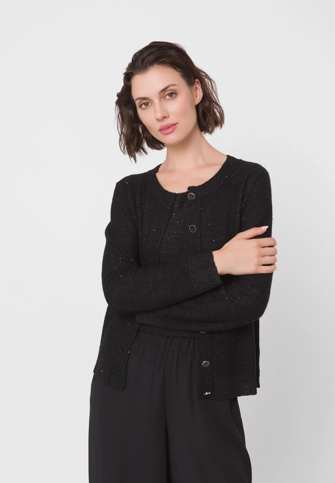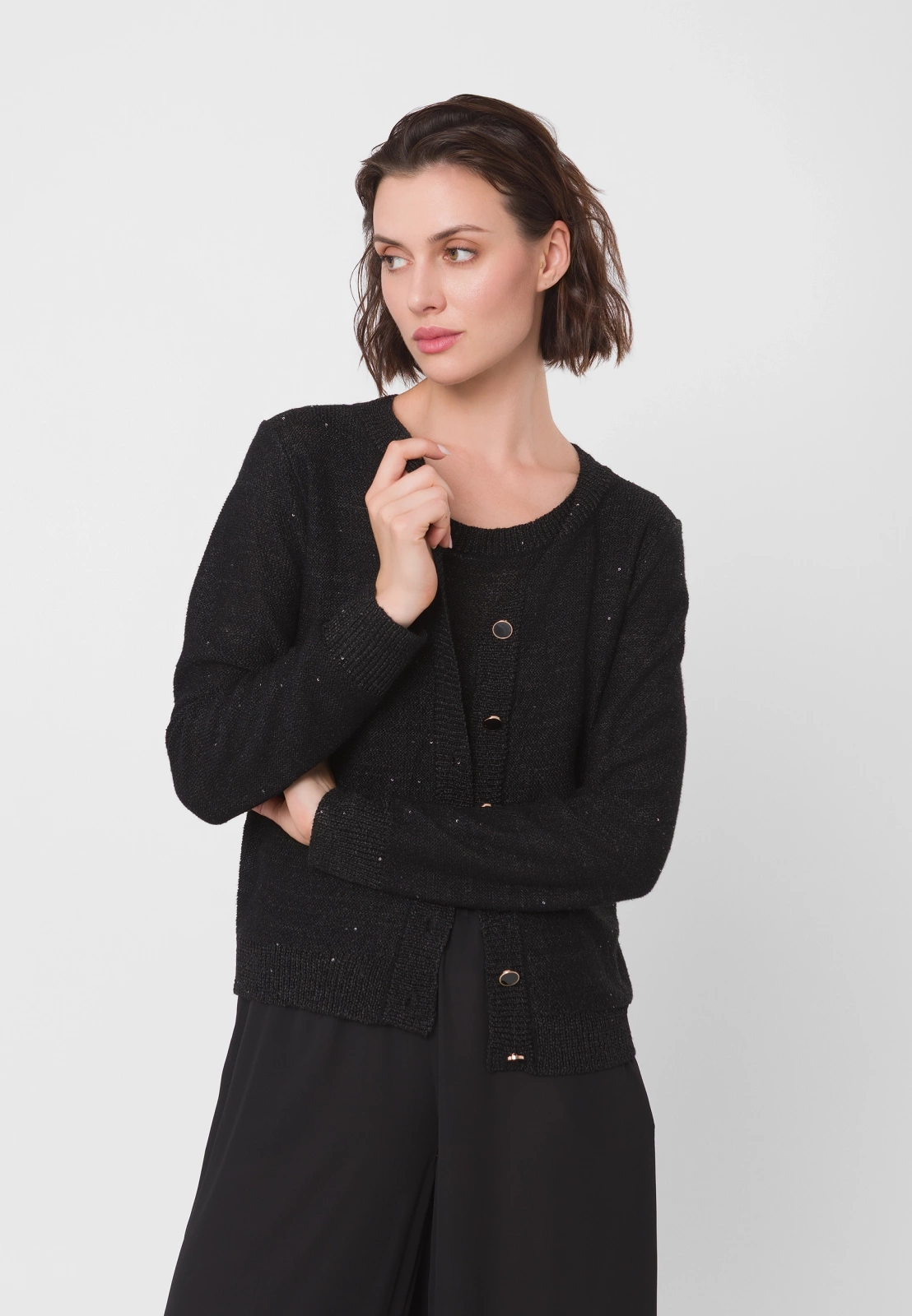 Wiskozowy kardigan z cekinami w czarnym kolorze