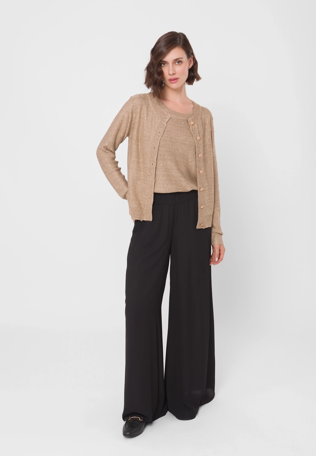 Wiskozowy kardigan z cekinami w złotym kolorze